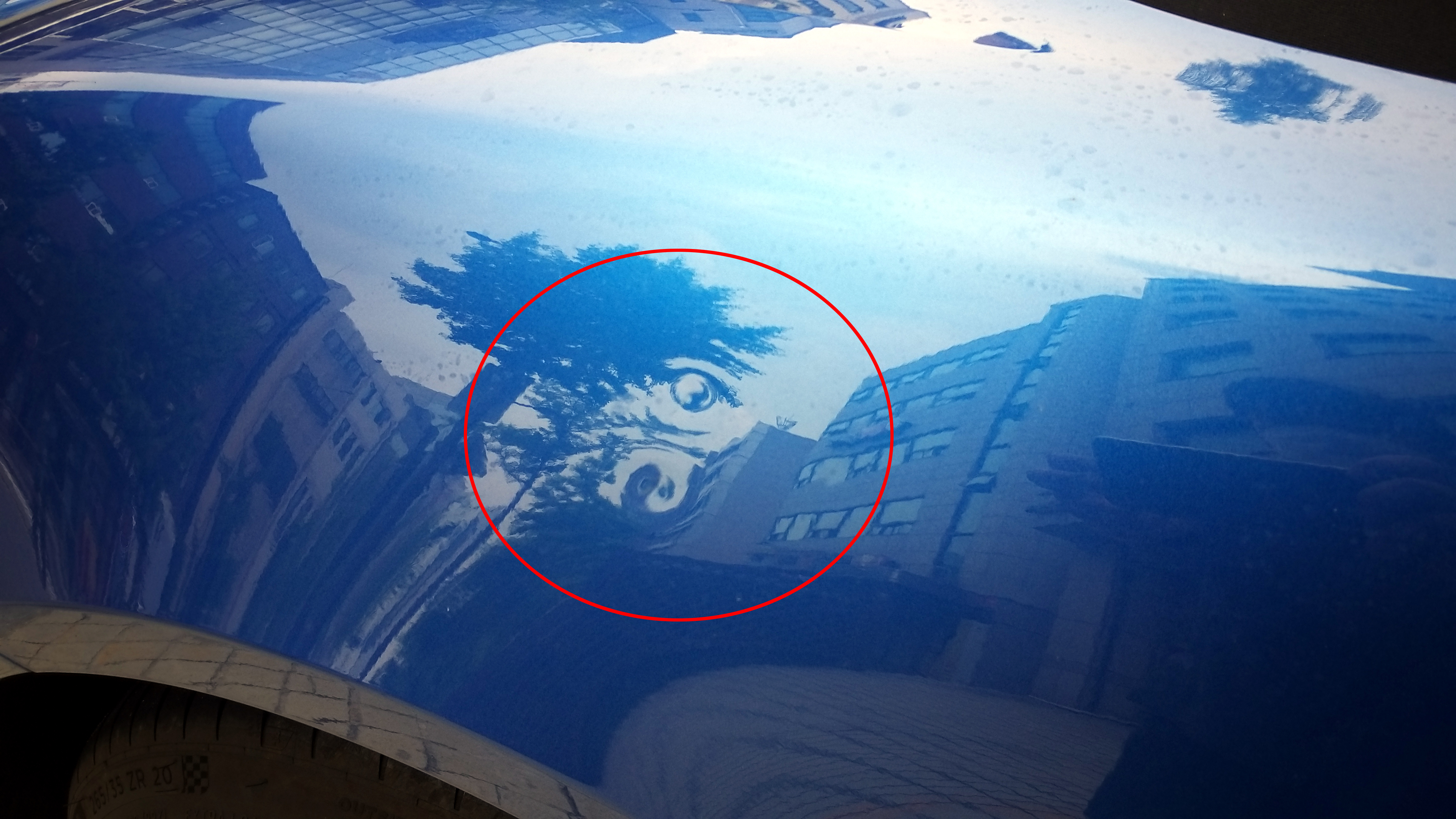 사진과 같이 휀다 한부분에 두개의 변형된 모습이 보입니다. 다행히 도장면 손상이 없어 덴트작업만으로 복원 가능하였구요.
