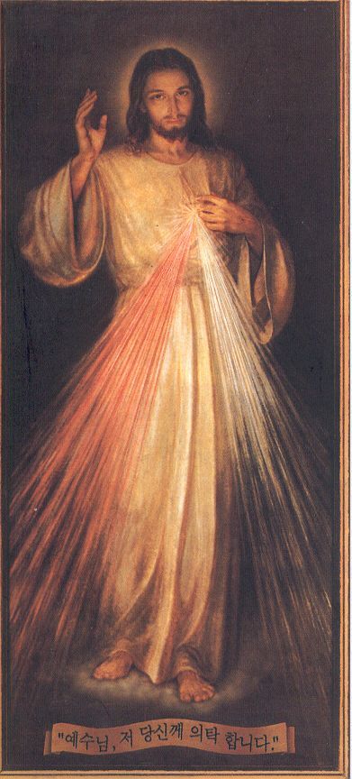 “내 딸아, 온 세상에 나의 무한한 자비를 알려라. 내 자비가 모든 영혼들, 특히 죄인들의 피난처가 되기를 바란다. 그날 내 깊은 자비의 바다가 열릴 것이며 내 자비의 샘으로 다가오는 사람에게는 바다와 같은 은혜를 내릴 것이다. 고해 성사를 받고 성체를 영하는 사람은 모든 죄와 벌을 사면 받을 것이다. 그날 은총의 문이 활짝 열릴 것이다.