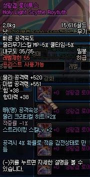 5) 기타 등등 위의 4가지 말고도 속강이 붙어 있는 템으로서는 아라드 용사의 칭호와 일부 무기등이 있다. 아라의 용사의 칭호 (각 속성별 극옵 4)