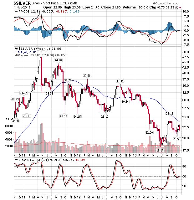 온스당 1,300달러 이하로 밀어나려는 시도들이 재현되었습니다만 주말에 최종 1,300달러 이하로 밀어내는 데는 역부족입니다. 미국의 실버 이글 은화가 약 4주 동안 판매를 중단한다는 미국 조폐국의 소식이 있는 가운데 올해 현재까지 5,000톤의 실물 금이 중국으로 넘어갔다는 Hat Trick Letter의 Jim Willie의 주장과 런던 금 시장의 임박한 디폴트 위험에 대형 금은 은행들이 곤경에 처해 있다는 런던 금 시장의 내부 고발자인 매과이어의 설명처럼 달러를 지키기 위해 종이 금 시장을 조작하면서 털리고 있는 실물 금과 은의 양은 그야말로 엄청납니다. 이런 배경을 볼 때 귀금속 시장의 시장 조작은 점점 그 위력이 줄어들 수 밖에 없습니다.