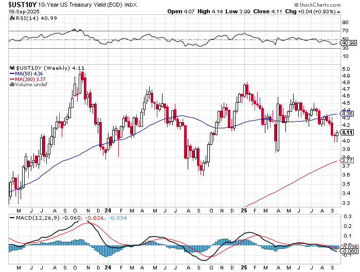 10년 만기 미국 국채 수익률 주간 차트