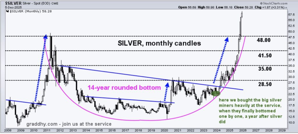 스웨덴의 Graddhy: 이번 돌파 상승에서 은이 60~70달러까지 갈 수 있다고 말해왔고, 지금은 은이 거의 60달러 수준에 도달했다. 역사가 만들어지고 있다.