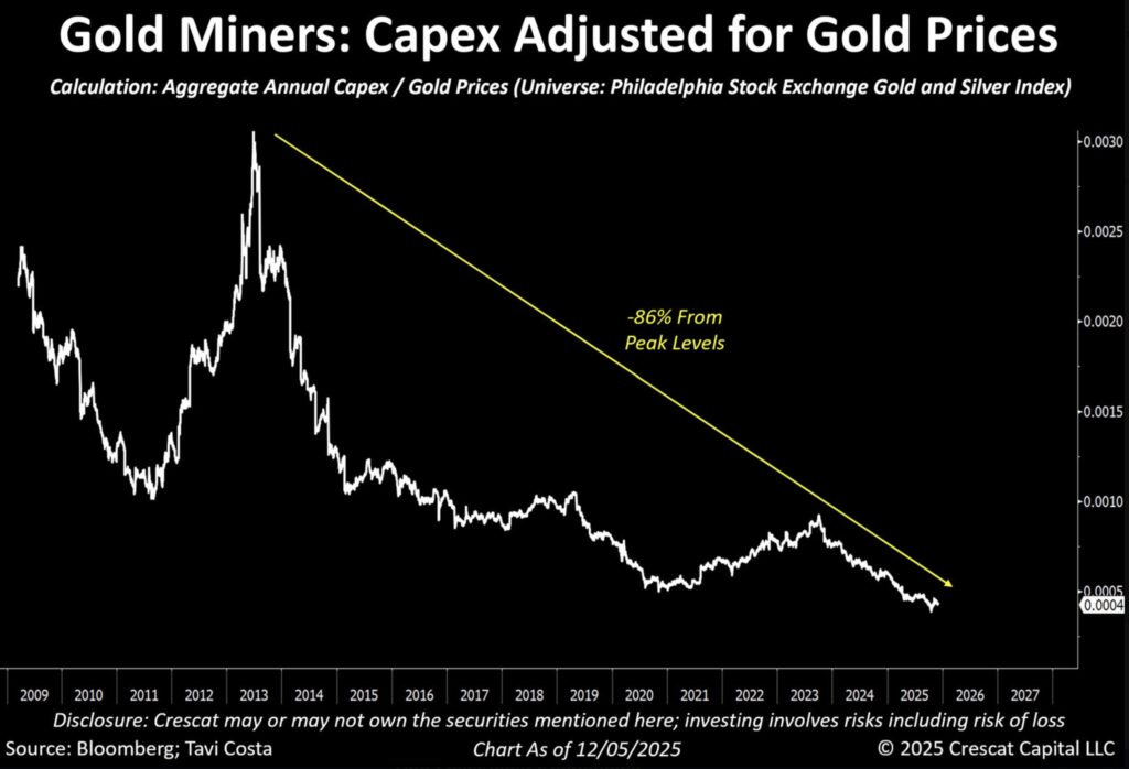 Otavio Costa, 믿기 어려울 정도이다 . 금이 온스당 4,200달러이고 은이 온스당 60달러에 육박하는 상황에서 광업 산업 전체의 자본 지출이 지금처럼 여전히 낮을 것이라고 누가 생각했을까?