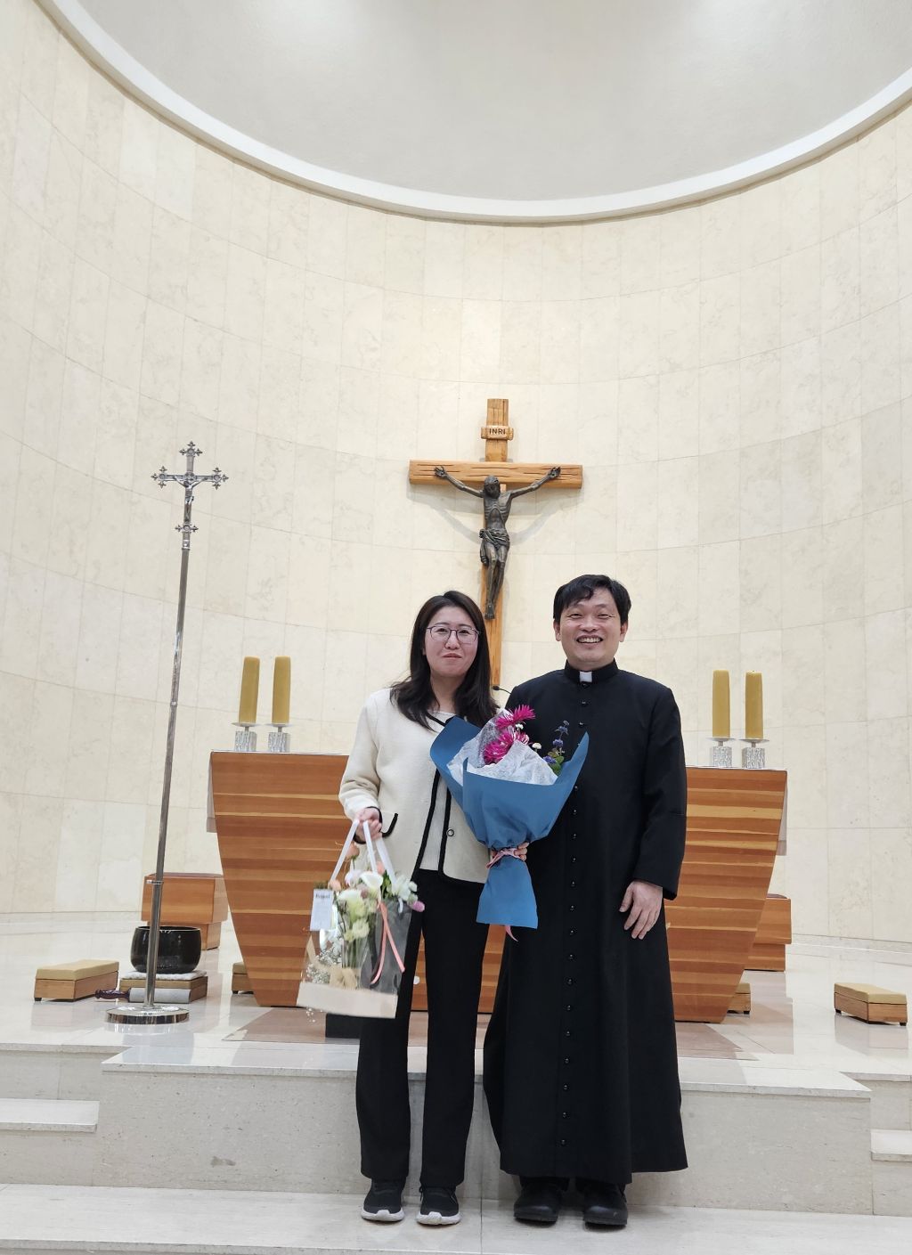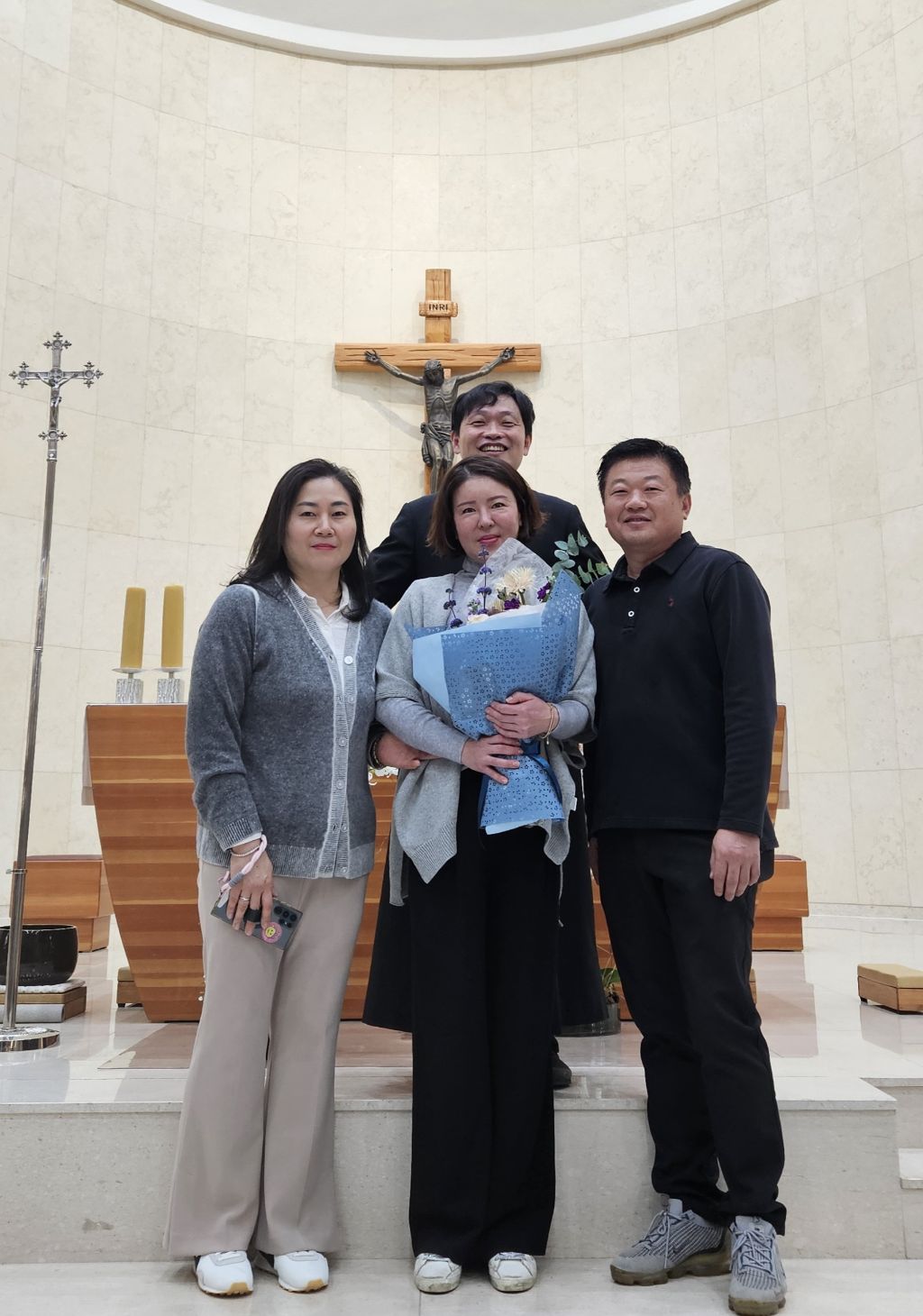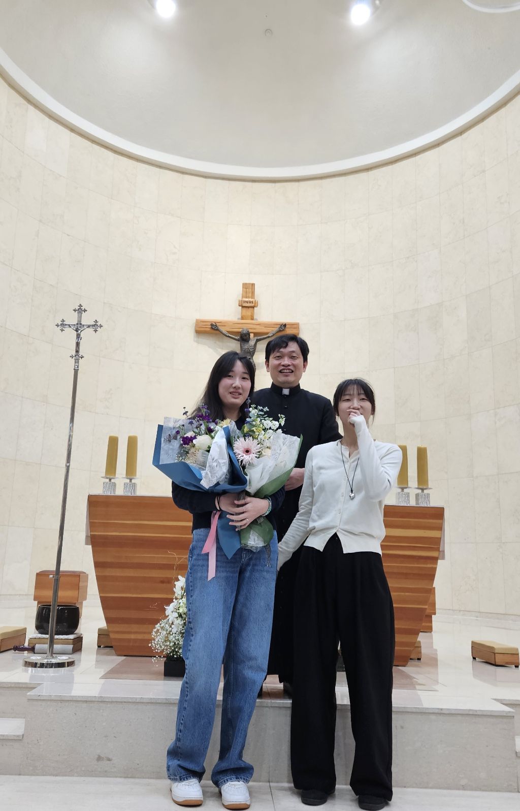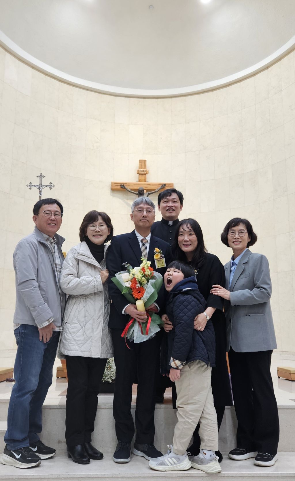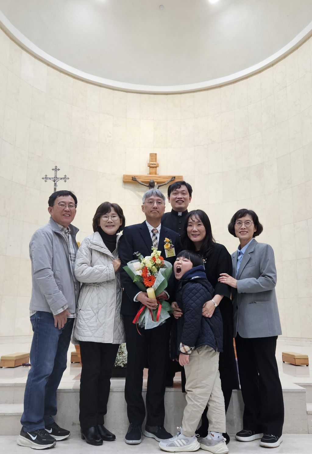+찬미예수님. 지난 4/27.입교한 16명 신자분중.3명 도중탈락. 7개월여동안 모든 교리과정을 성실히 마치고 14명의 세례대상자와 1명. 첫영성체로 새롭게 하느님의 자녀로 태어났습니다. 하느님과 교우들의 축복속에 새롭게 태어난 새신자분들이 우리 신앙공동체 안에서 앞으로도 신앙생활을 잘 할수 있도록 서로가 서로에게 따뜻한 격려와 응원이 되길 기도드립니다.♡ 이 날 늘 말없이 봉사해주신 제대회. 성가대. 헌화회. 전례부.등과 사진찍어주신 깊은 감사를 드립니다.♡