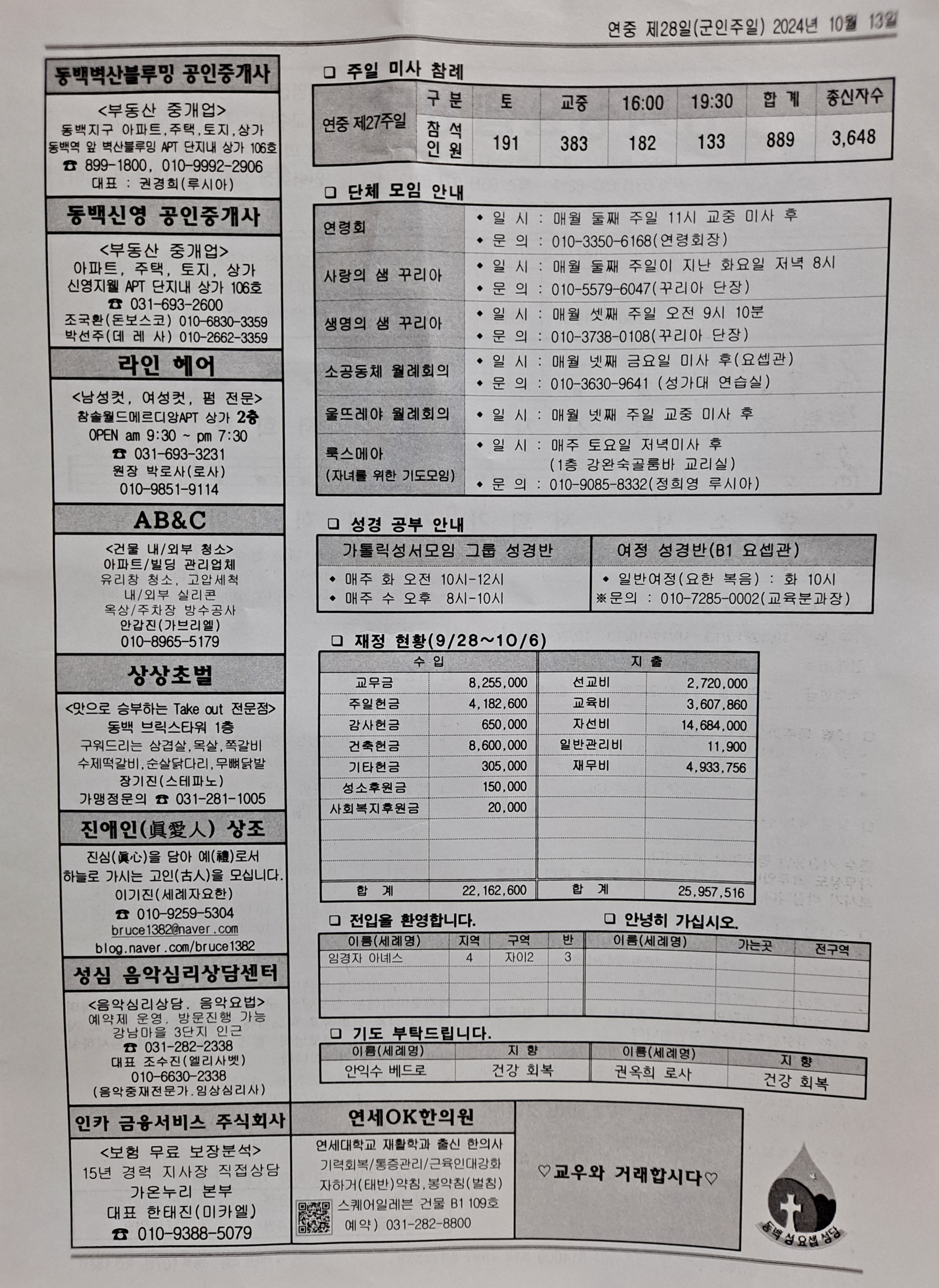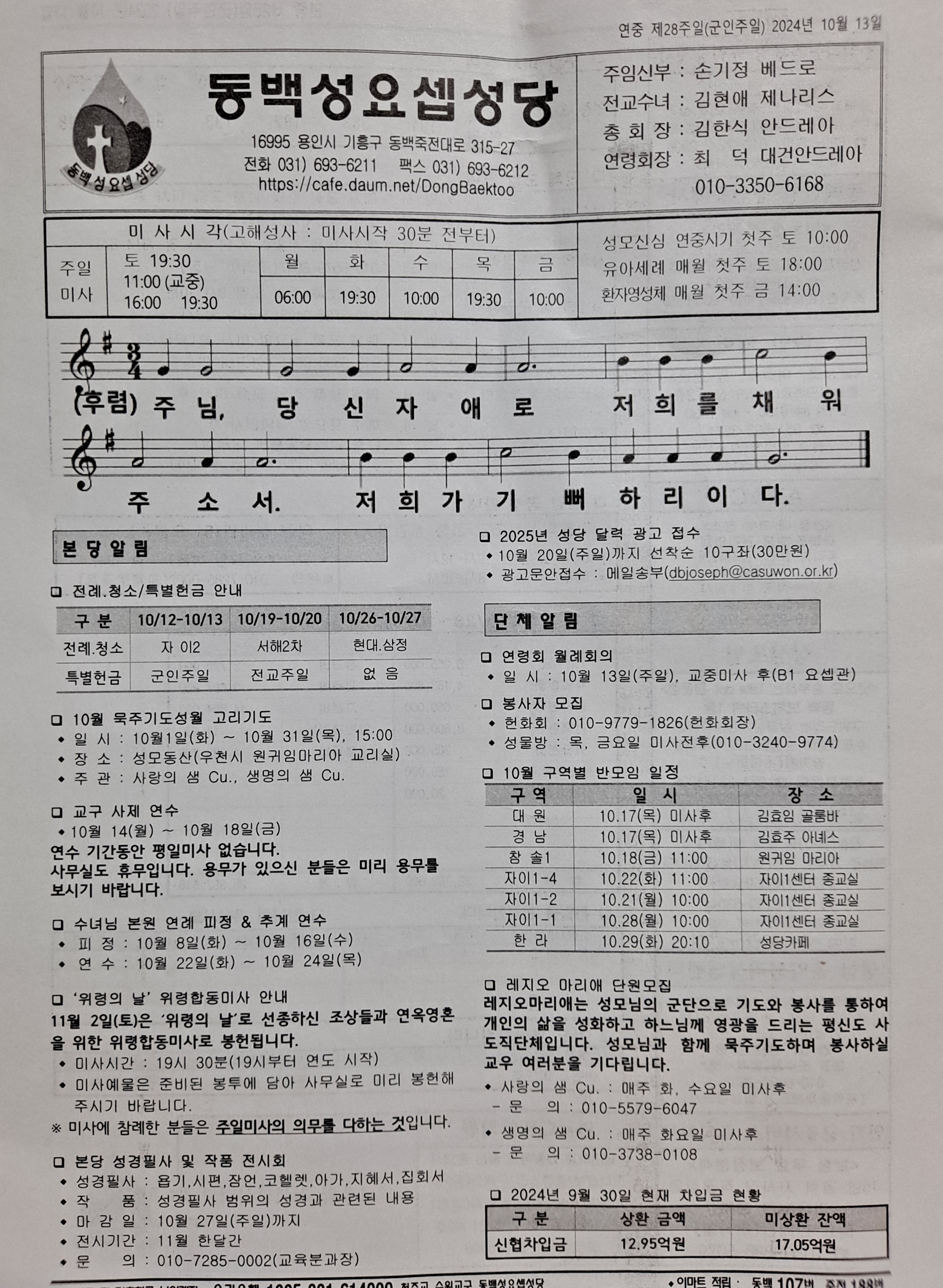 2024년 10월 13일 (연중 제28주일) 주보 작성자이강욱다니엘|작성시간24.10.13|조회수128 목록 댓글 0 글자크기 작게가 글자크기 크게가 2024년 10월 13일 (연중 제28주일) 주보 입니다 다음검색 현재 게시글 추가 기능 열기 북마크 공유하기 신고 센터로 신고 댓글 댓글 0 댓글쓰기 답글쓰기 댓글 리스트
