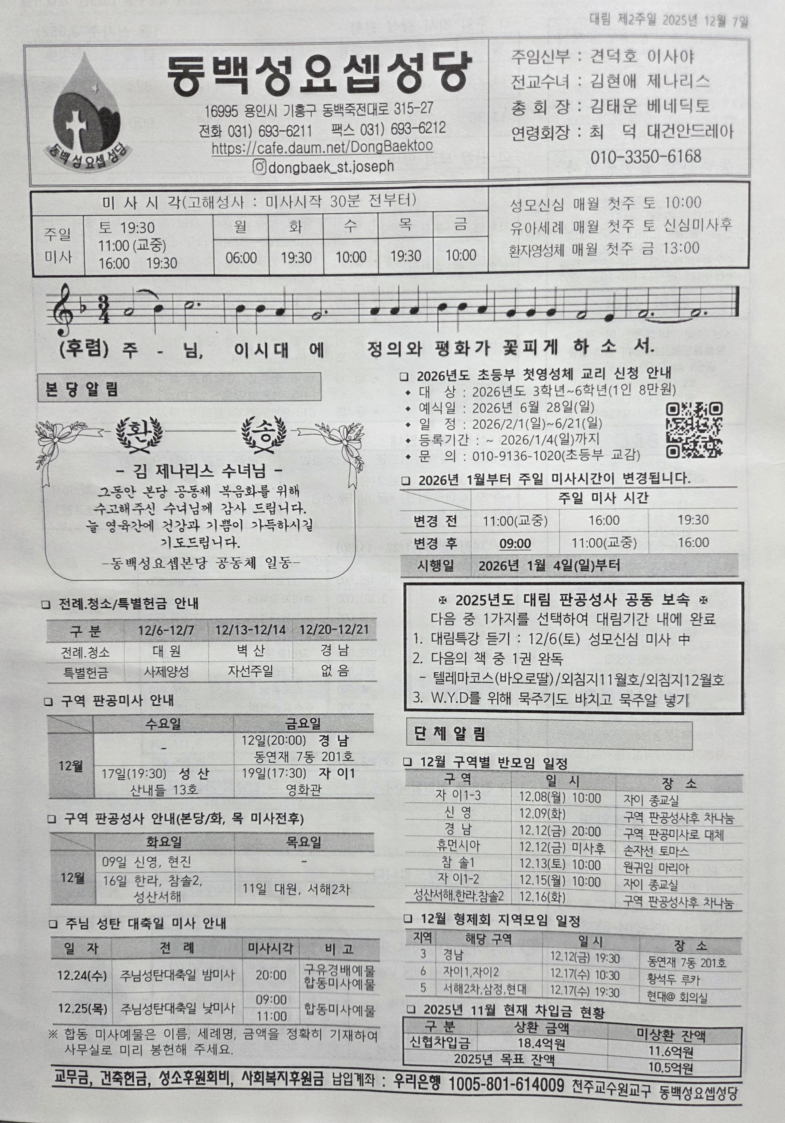 2025년 12월 7일 (대림 제 2주일) 주보 작성자이강욱다니엘|작성시간25.12.07|조회수192 목록 댓글 0 글자크기 작게가 글자크기 크게가 2025년 12월 7일 (대림 제 2주일) 주보입니다 다음검색 현재 게시글 추가 기능 열기 북마크 공유하기 신고 센터로 신고 댓글 댓글 0 댓글쓰기 답글쓰기 댓글 리스트