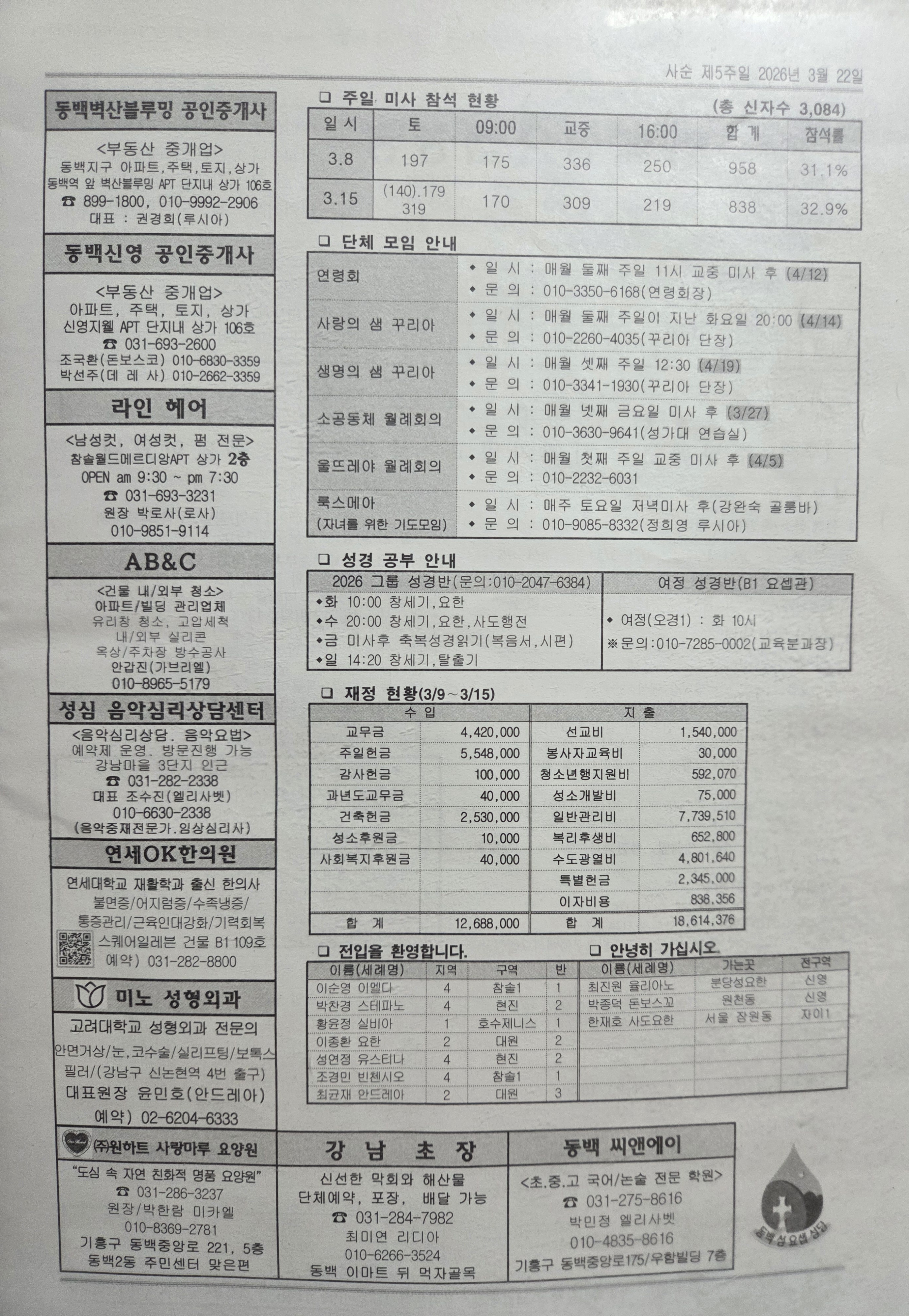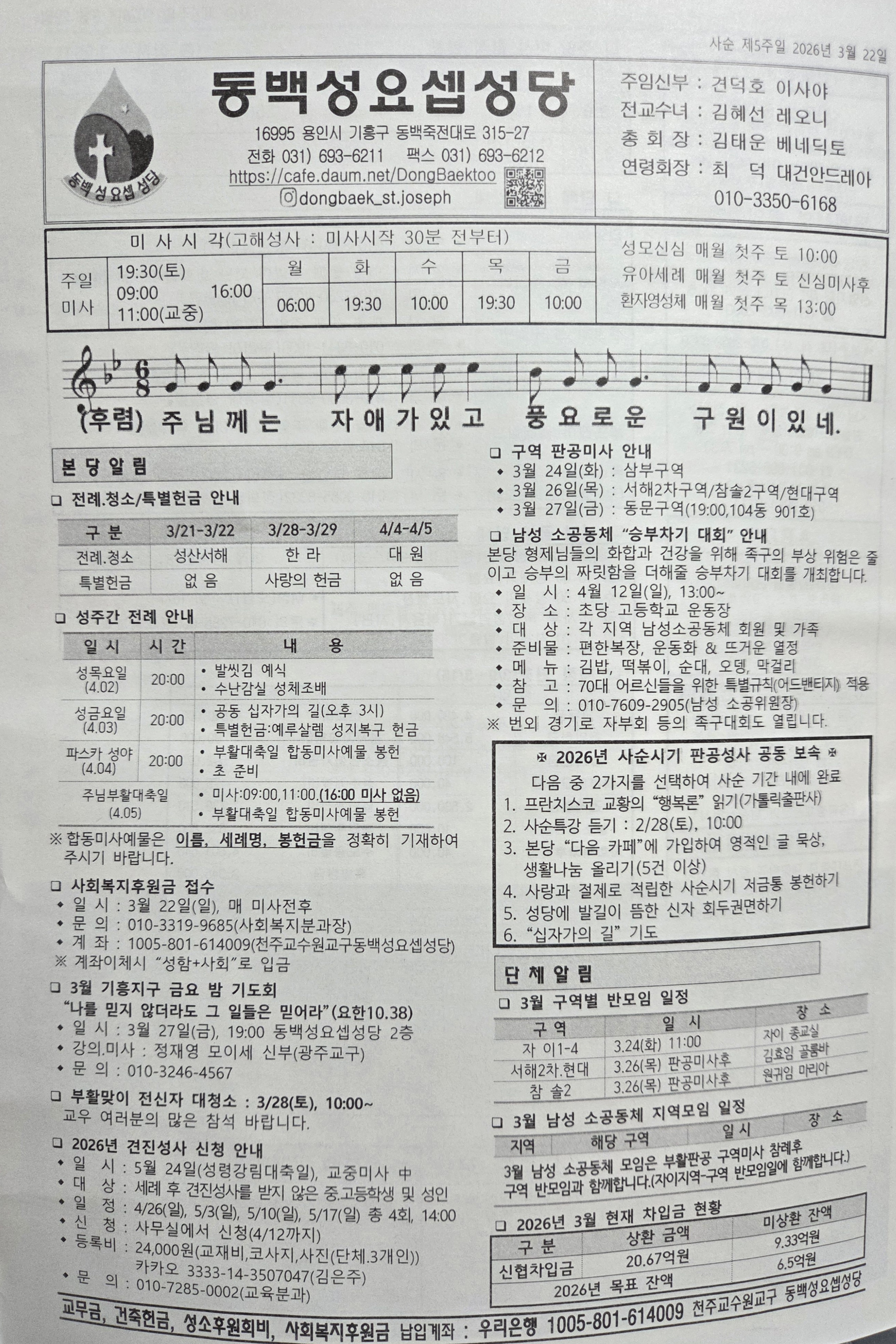 2026년 3월 22일 (사순 제5주일) 주보 작성자이강욱다니엘|작성시간26.03.22|조회수35 목록 댓글 0 글자크기 작게가 글자크기 크게가 2026년 3월 22일 (사순 제5주일) 주보 입니다 다음검색 현재 게시글 추가 기능 열기 북마크 공유하기 신고 센터로 신고 댓글 댓글 0 댓글쓰기 답글쓰기 댓글 리스트