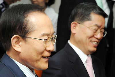 ★...자유선진당 이회창 총재와 창조한국당 문국현 대표가 23일 오전 국회 의원회관 101호실에서 회동 교섭단체 공동구성합의등 현안에 대해 합의를 하였다. /뉴시스 ▒☞[출처]조선일보 |