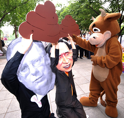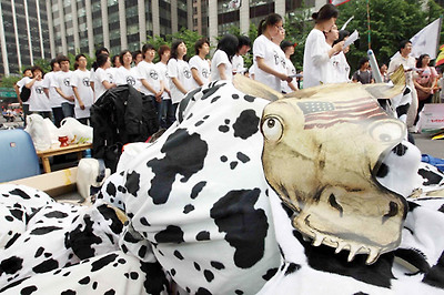 ★...23일 오후 서울 청계광장에서 열린 미국산 쇠고기 수입반대 집회에서 전국한의과대학 학생들이 정부에 미국산 쇠고기 수입 재협상을 촉구하고 있다. /연합뉴스 ▒☞[출처]조선일보 |
