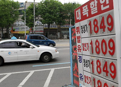 ★...기름값이 치솟고 있는 가운데 23일 기름값이 인근 주유소와 비교해 싼 편인 인천 남동구 구월동의 한 주유소의 가격판에 '대폭할인'이라는 문구가 적혀있다. /연합뉴스 ▒☞[출처]조선일보 |