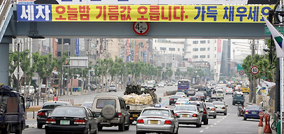 ★...고유가 행진이 계속되고 있는 가운데 23일 서울 한 주유소가 육교 위에 기름값 인상을 알리는 현수막을 걸어놓고 있다. 주유소 관계자는 "고유가로 오늘 밤 가격인상을 할 예정이다"며 "단골고객들을 위해 현수막을 걸었다"고 밝혔다. /연합뉴스 ▒☞[출처]조선일보 |