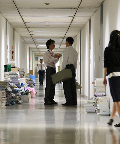 ★...23일 국회 의원회관 복도에는 18대 국회 진입에 실패한 의원 사무실에서 내다버린 책자와 집기 등으로 어수선하다. /연합뉴스 ▒☞[출처]조선일보 |