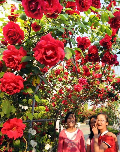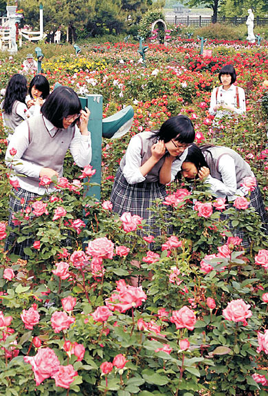 ★...지구 온난화 영향으로 장미 개화시기가 빨라진 가운데 23일 오전 경기 과천시 막계동 서울대공원 장미원에서 나들이 온 청소년들이 활짝 핀 장미 향기를 맡으며 즐거워하고 있다. 과천 = 신창섭기자 ▒☞[출처]문화일보 |