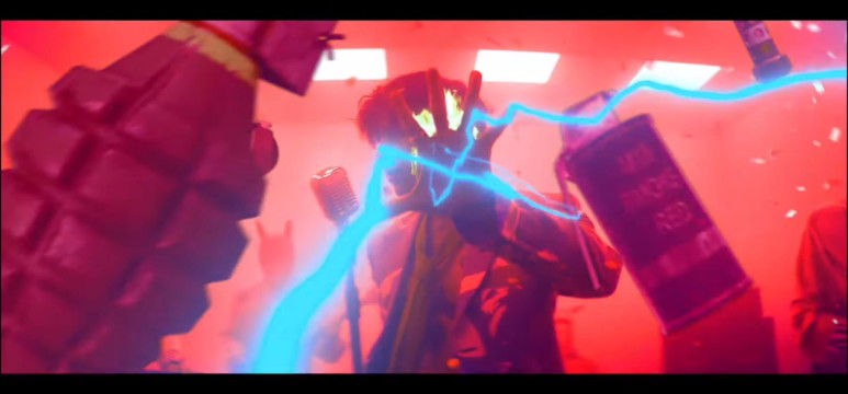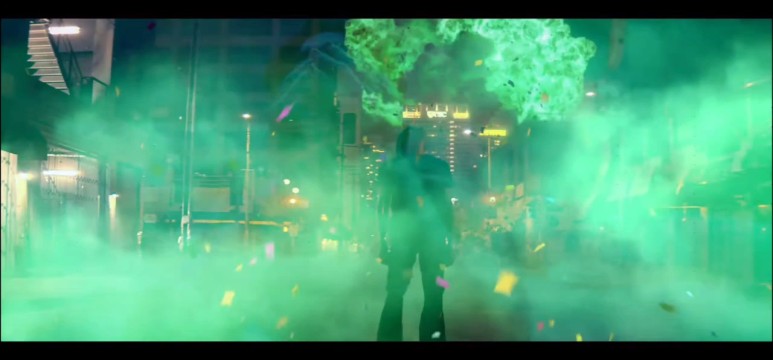 유성이 떨어지고 폭발하자 글리터 인세니티 주변으로 초록색 연기와 컨페티가