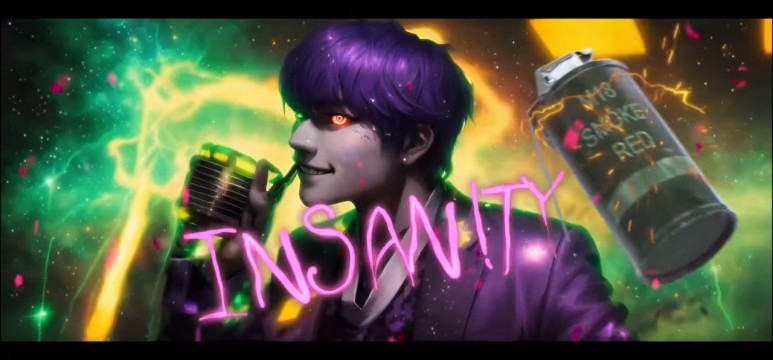 보라색과 붉은 색으로 위험하게 미친 인세니티신은
