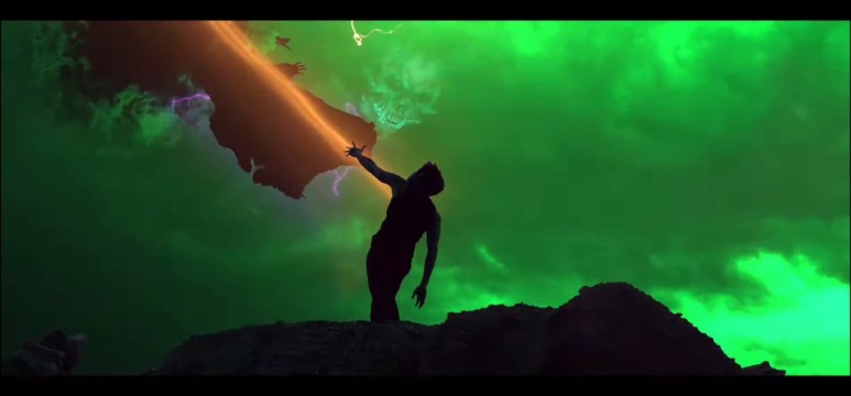 가운데 주황색(하이브리드)빛과 검은 공간에서 나타난 왼쪽 마이토 오른쪽 인세니티