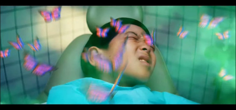 치과의자에서 어린이안의 보라색나비가 여기로 연결