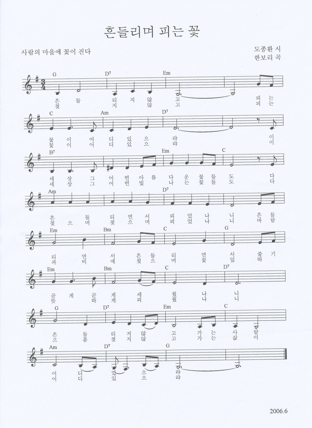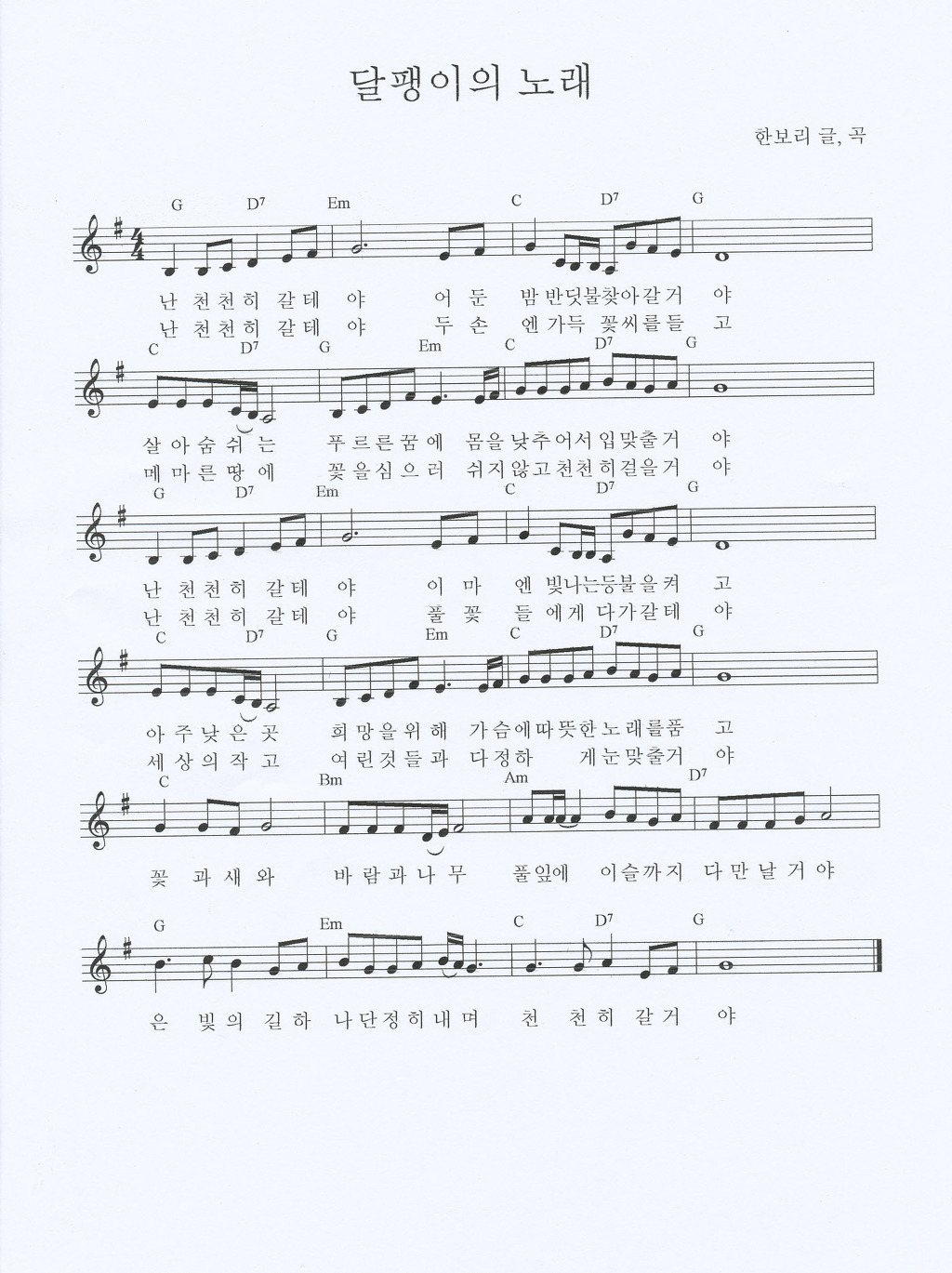 지난 주일, 보리울에 둘러앉아 함께 불렀던 노래 악보들입니다.
