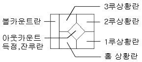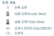 예를 들어 볼넷으로 1루에 나가면 1루상황란에 B라 적고 2루 도루에 성공하면 2루상황란에 S라 적는 식입니다.
