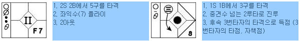 예를 들어 1사후 1루주자였다가 타자의 내야땅볼로 2루에서 포스아웃됐을 경우 2루상황란에 II 라고 적습니다.