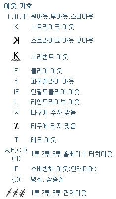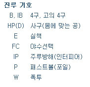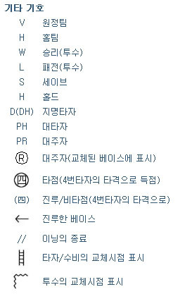 야구 기록은 규칙이 복잡한 만큼 복잡한 기호를 이용해서 모든 상황을 다 기록해야 합니다.