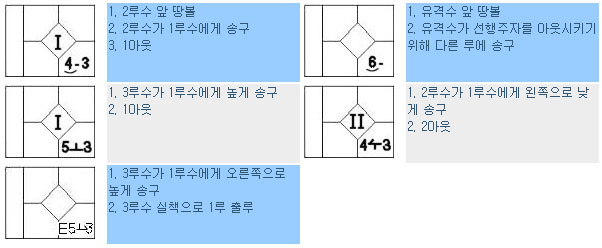 송구가 치우친 방향 표시나 땅볼아웃의 경우 땅볼타구 표시 등은 간단한 기록에서는 생략하셔도 됩니다.