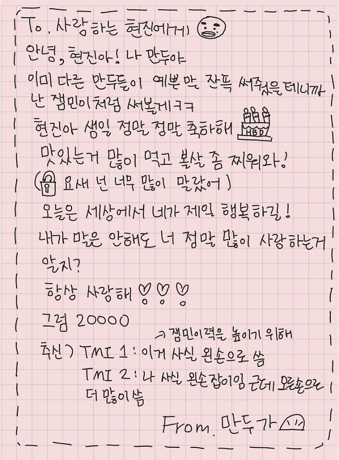 현진이 생일 기념 만두에게 해주고 싶은 말~❤︎