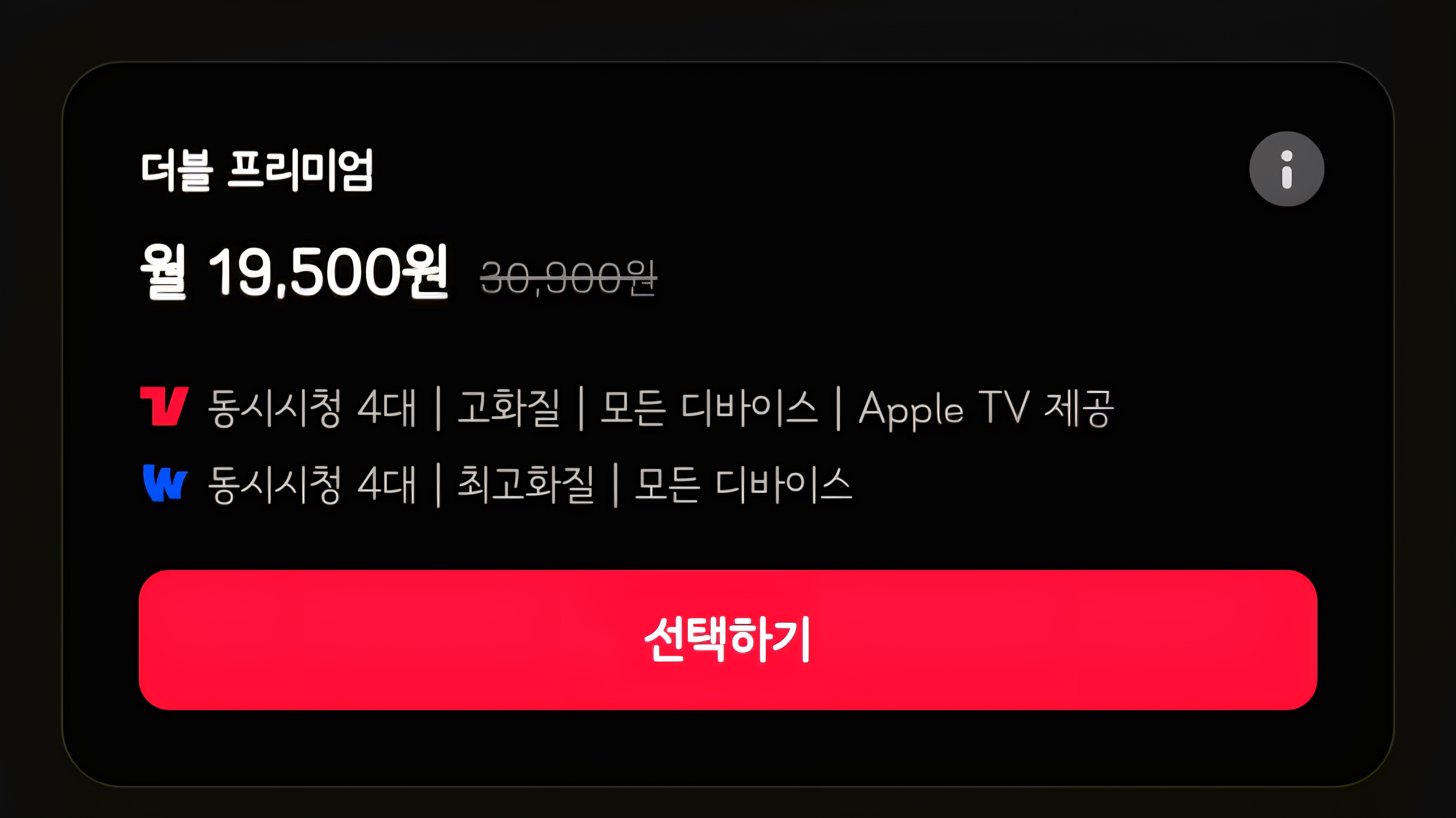 [완료]티빙웨이브 ott 프리미엄(1년) 3분 구해요!! 작성자전정국의 여자|작성시간26.01.01|조회수136 목록 댓글 8 글자크기 작게가 글자크기 크게가 ❗오픈채팅 사용 시 본문에 허용 캡처본 첨부❗ 손잡 게시판 아님 🔥 운영진 허용 없는 오픈 채팅 사용은 활중 대상 🔥🤍 티빙X웨이브 요금제입니다!!🤍 (월) 19,500원 ÷ 4인 = 월 4,875원 인데, 저는 1년 공구할 분들 구하고있습니다!🤍 총 금액 1년 58,500 원 입니다!!구해지는대로 이용권 결제 예정입니다🥰이용권 결제되는 날로부터 ~1년 함께할 분 구해요* 계정공유정책으로 티비시청은 공유가 안된다고 합니다(+) 다 모이면 오픈카톡 만들겠습니다. 다음검색 현재 게시글 추가 기능 열기 북마크 공유하기 신고 센터로 신고 댓글 댓글 8 댓글쓰기 답글쓰기 댓글 리스트 해당 댓글은 작성자와 운영진만 볼 수 있습니다. 해당 댓글은 작성자와 운영진만 볼 수 있습니다. 해당 댓글은 작성자와 운영진만 볼 수 있습니다. 해당 댓글은 작성자와 운영진만 볼 수 있습니다. 해당 댓글은 작성자와 운영진만 볼 수 있습니다. 댓글 전체보기