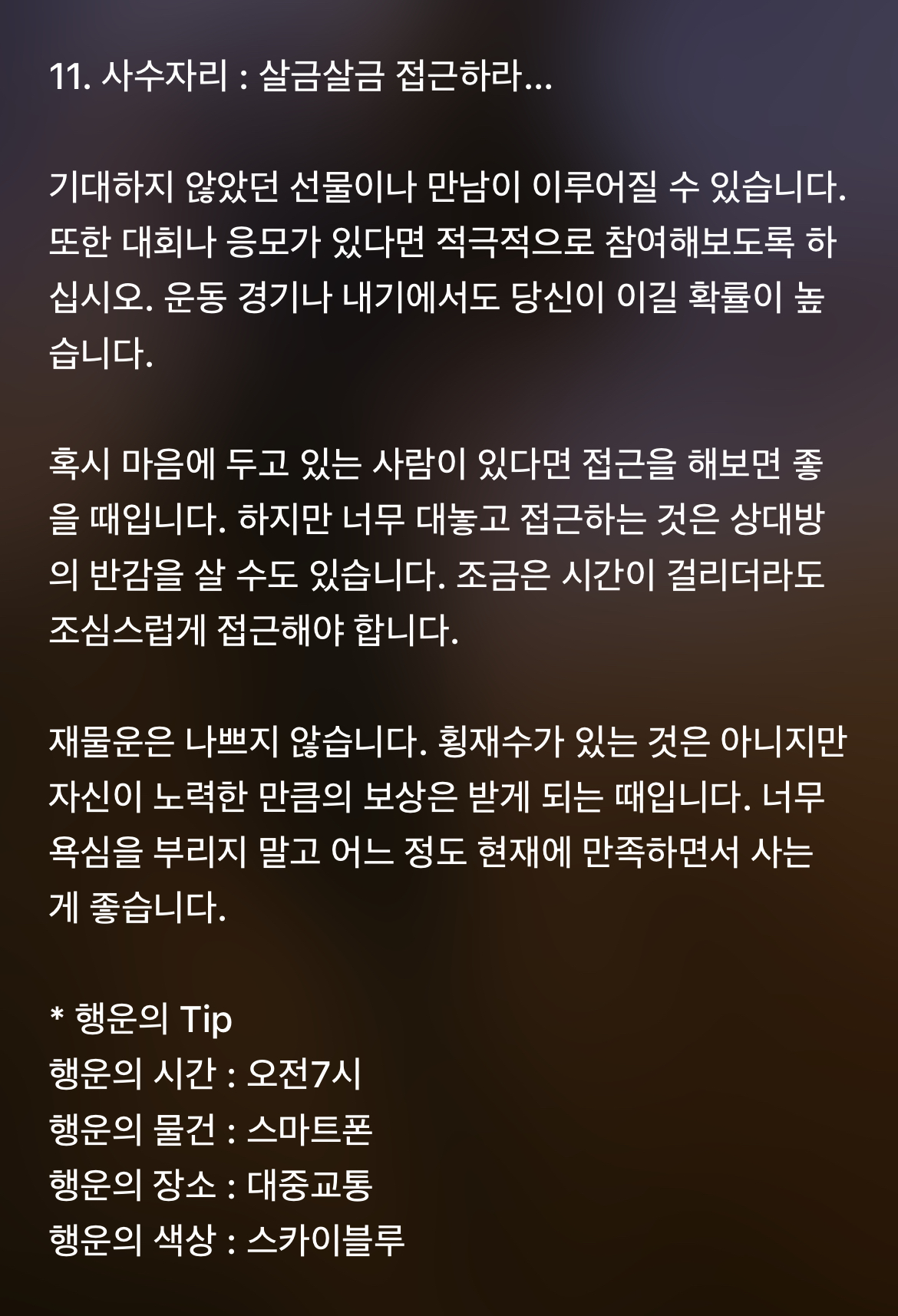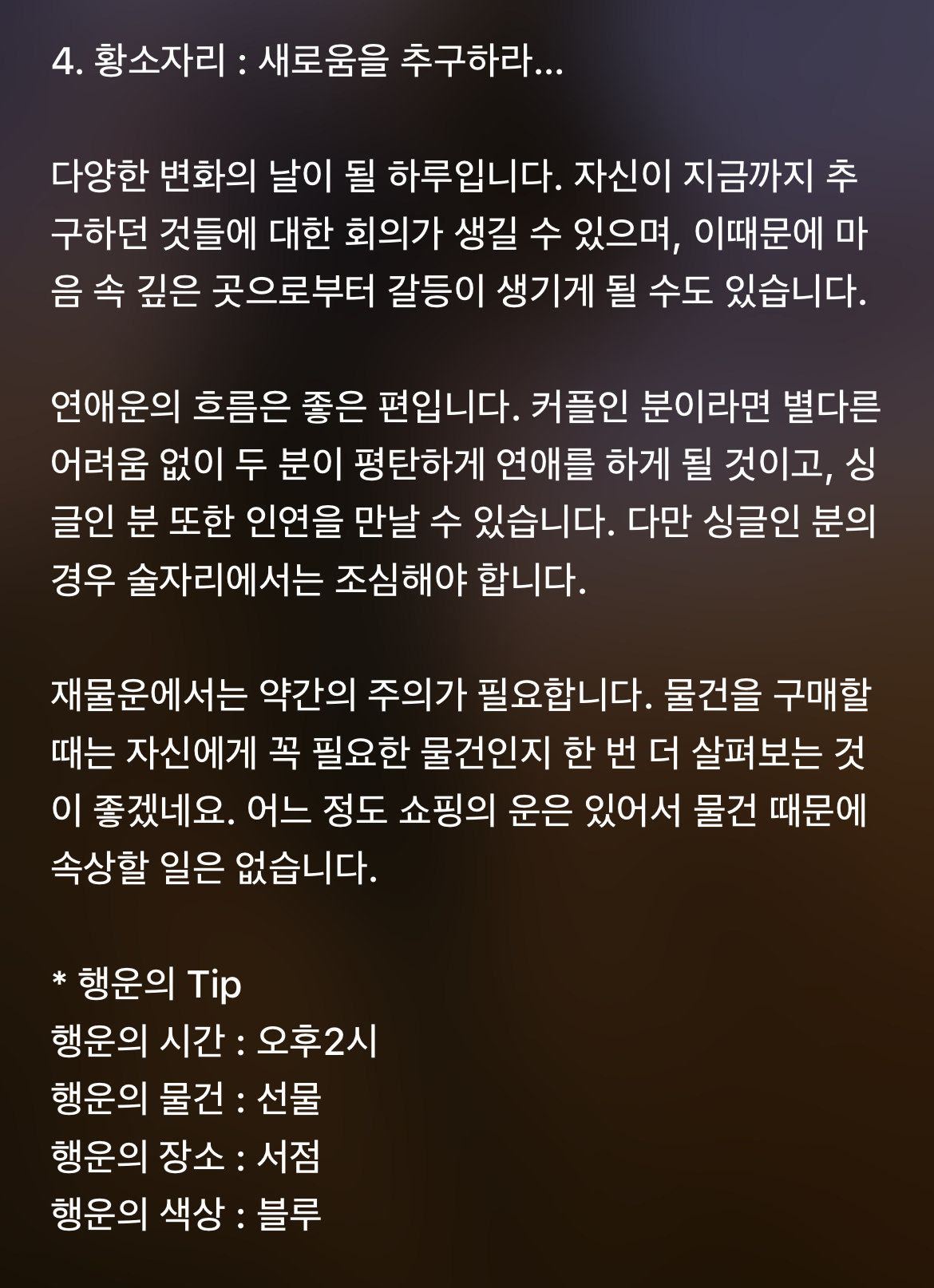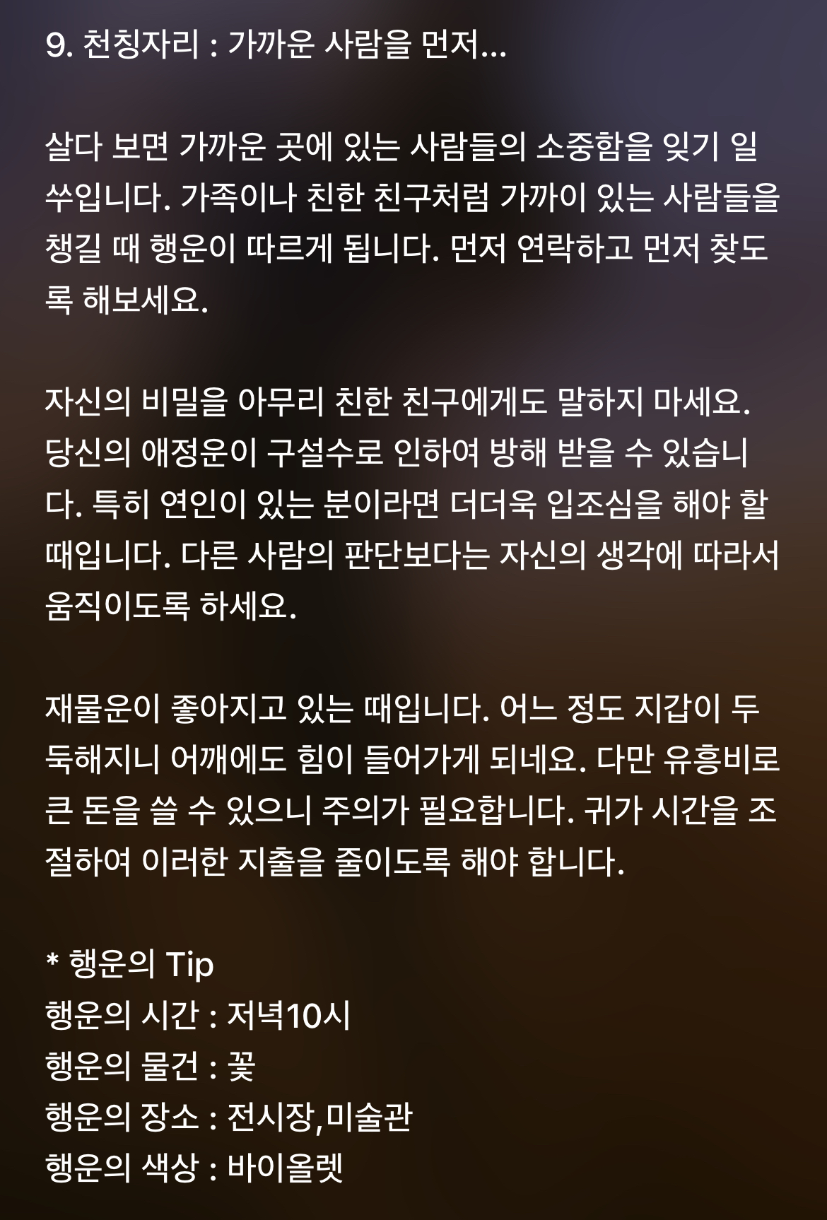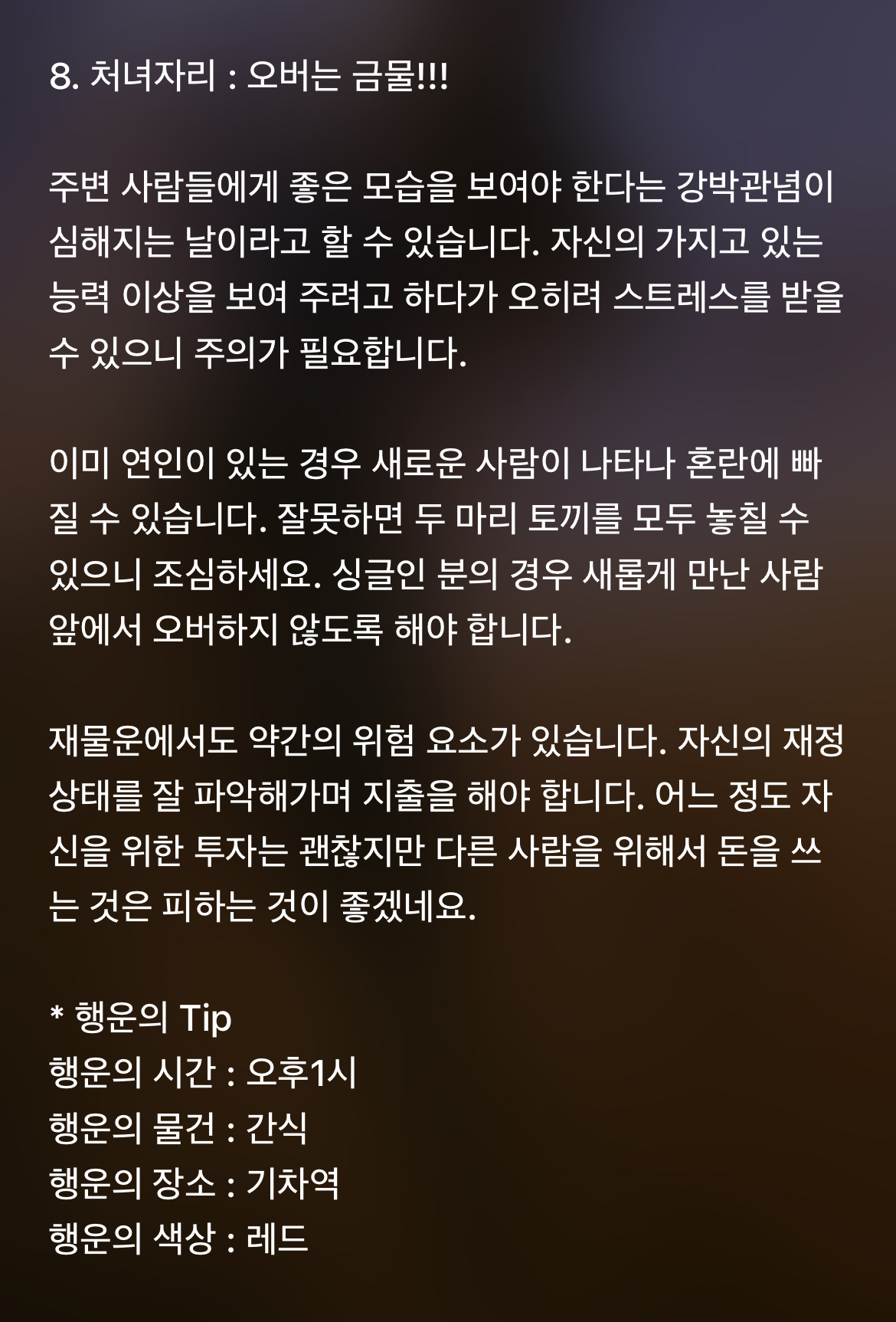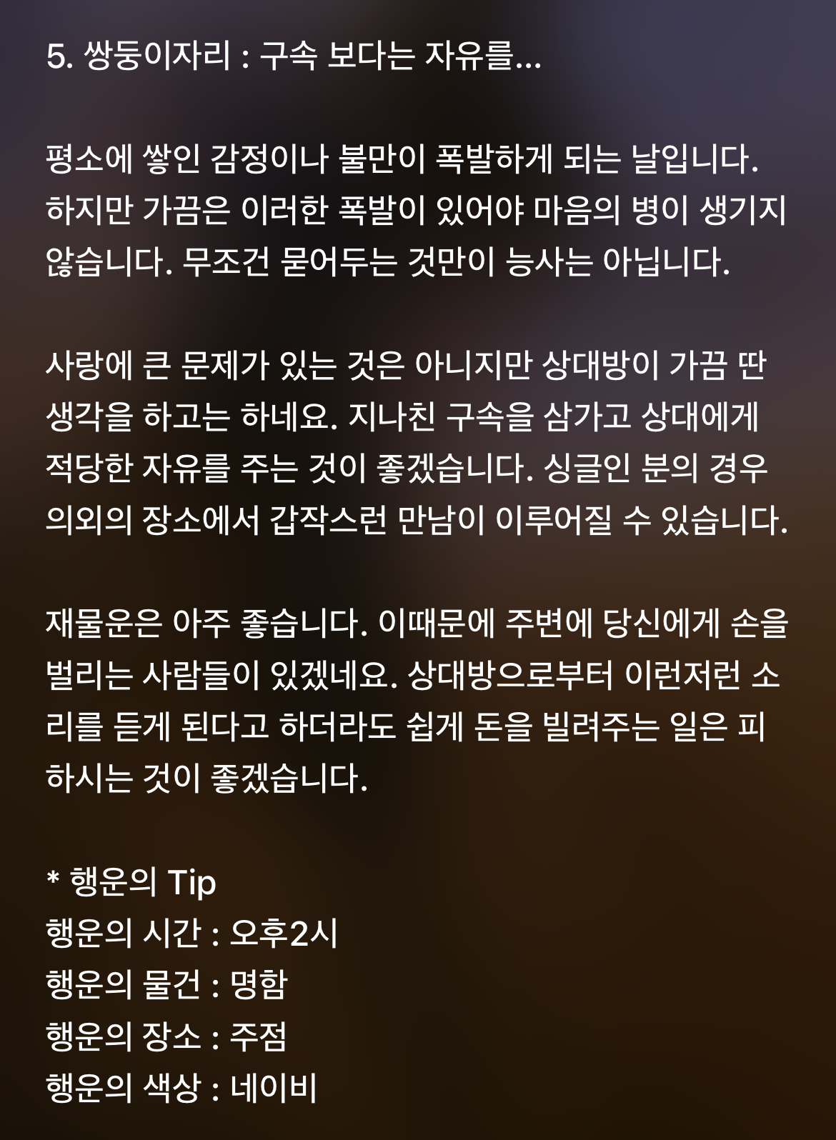 [기타]하루전에 미리보는 11월 26일 별자리운세 작성자바리요정|작성시간21.11.25|조회수5,159 목록 댓글 45 글자크기 작게가 글자크기 크게가 1차 출처 : 산수도인2차 출처 : 피키캐스트 다음검색 현재 게시글 추가 기능 열기 북마크 공유하기 신고 센터로 신고 댓글 댓글 45 댓글쓰기 답글쓰기 댓글 리스트 작성자B..BH | 작성시간 21.11.26 복채 작성자방탄 김남준 | 작성시간 21.11.26 복채♡ 작성자NewYork | 작성시간 21.11.26 복채 작성자Still dreaming | 작성시간 21.11.26 복채 작성자INSIDE OUT | 작성시간 21.11.27 복채 댓글 전체보기