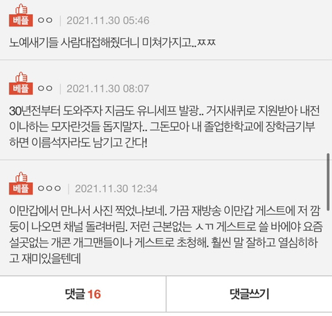 작성자하잉라이트 작성시간 21.12.01 그냥.. 이제 나오지마세요