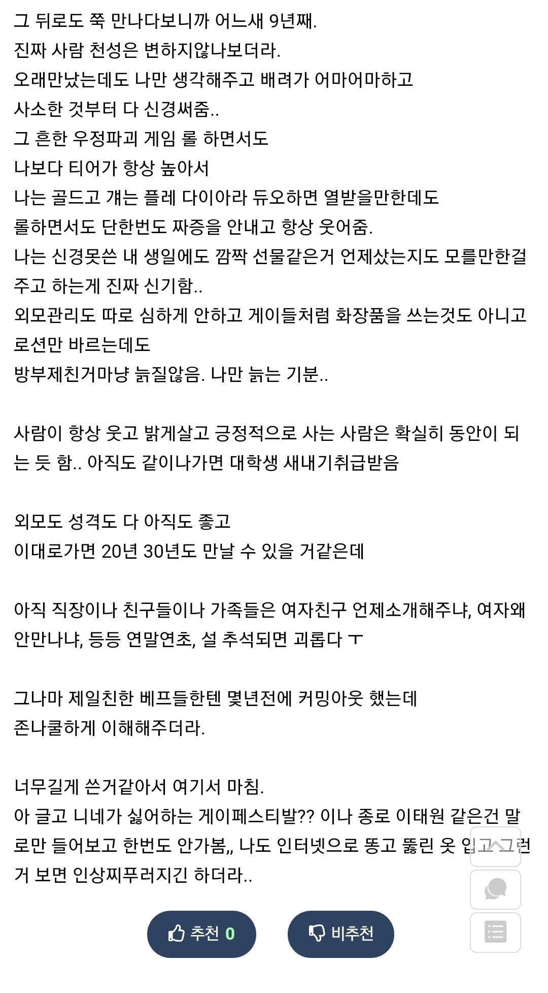 작성자이나빈 작성시간 21.12.15 어플 안 하는 자만추 범성애자인데 처음으로 여친 사귀었을 때 생각난다.