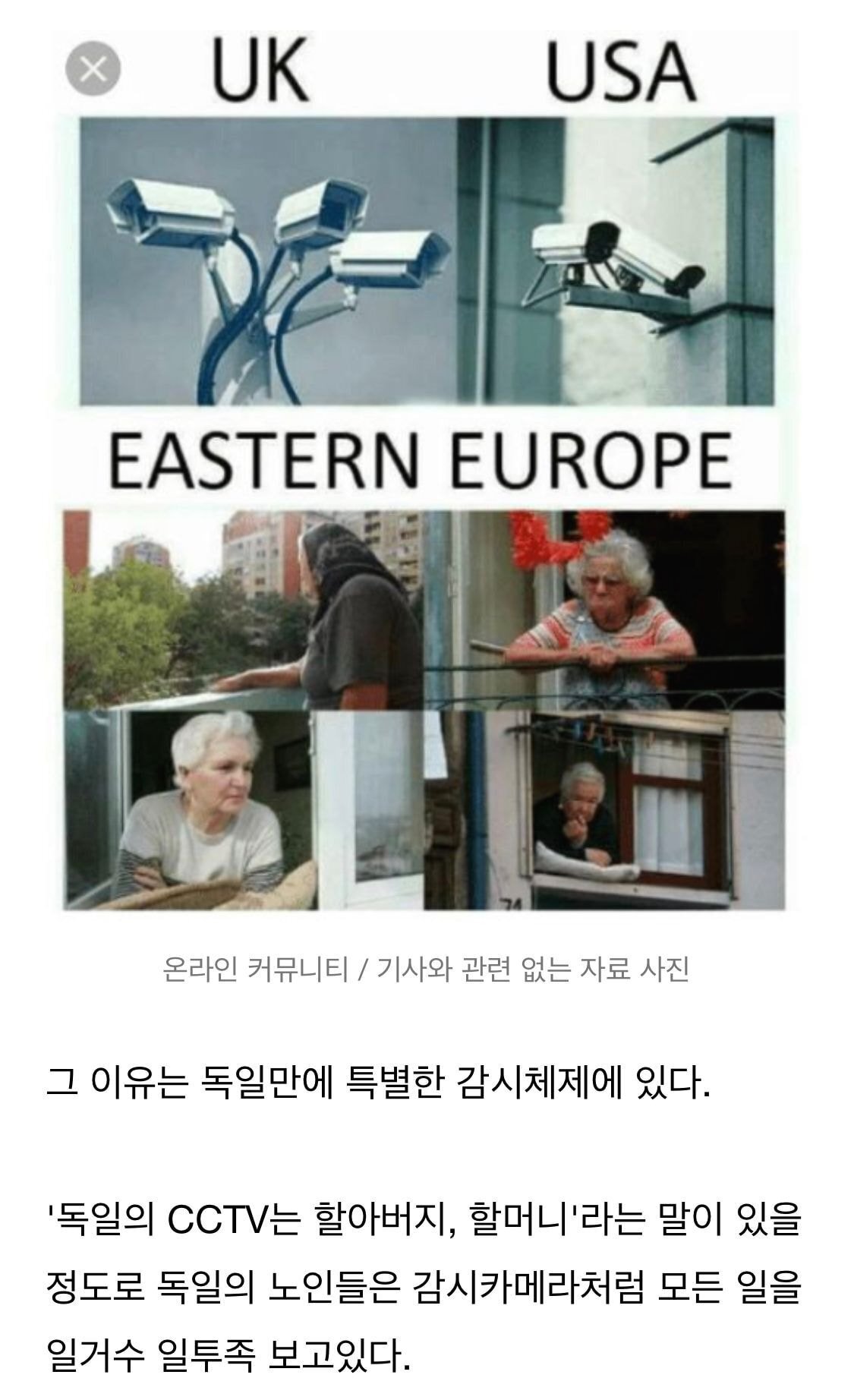 [기타]독일에 cctv가 없는 이유 작성자pain, thats an option|작성시간22.01.09|조회수2,134 목록 댓글 10 글자크기 작게가 글자크기 크게가 https://theqoo.net/2195678862독일에 cctv가 없는 이유 - 스퀘어 카테고리https://img.theqoo.net/PEmbn https://img.theqoo.net/LYgPT https://img.theqoo.net/ZUoli https://img.theqoo.net/YtLvV https://img.theqoo.net/nzniXtheqoo.net 다음검색 현재 게시글 추가 기능 열기 북마크 공유하기 신고 센터로 신고 댓글 댓글 10 댓글쓰기 답글쓰기 댓글 리스트 작성자Arles1891 | 작성시간 22.01.09 독일 노인들 유명하다더라 ㅋㅋ 영국할머니는 뜨개질하는 이미진데 독일할머니는 오지랖 오지는 이미지라고 ㅋㅋ 작성자EXO도경수 | 작성시간 22.01.09 뭐...? 미쳤다 진짜ㅋㅋㅋㅋㅋㅋㅋㅋㅋㅋ 작성자여기가맞는강ㅅ | 작성시간 22.01.09 그 쉴라 일행도 독일로 도망갔엇지않나 생각나네 작성자동여주 | 작성시간 22.01.09 와.. 작성자슈퍼 | 작성시간 24.08.08 오....마냥 좋지는 않네 댓글 전체보기
