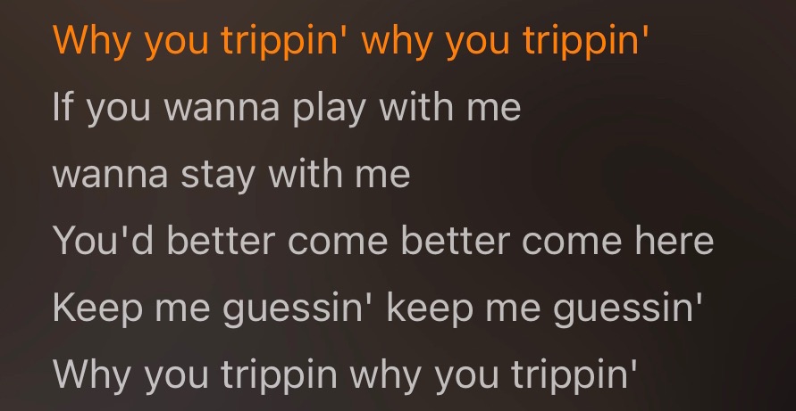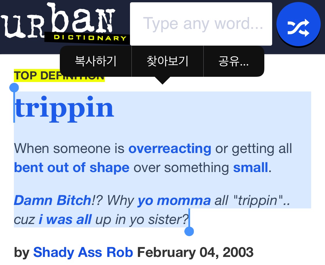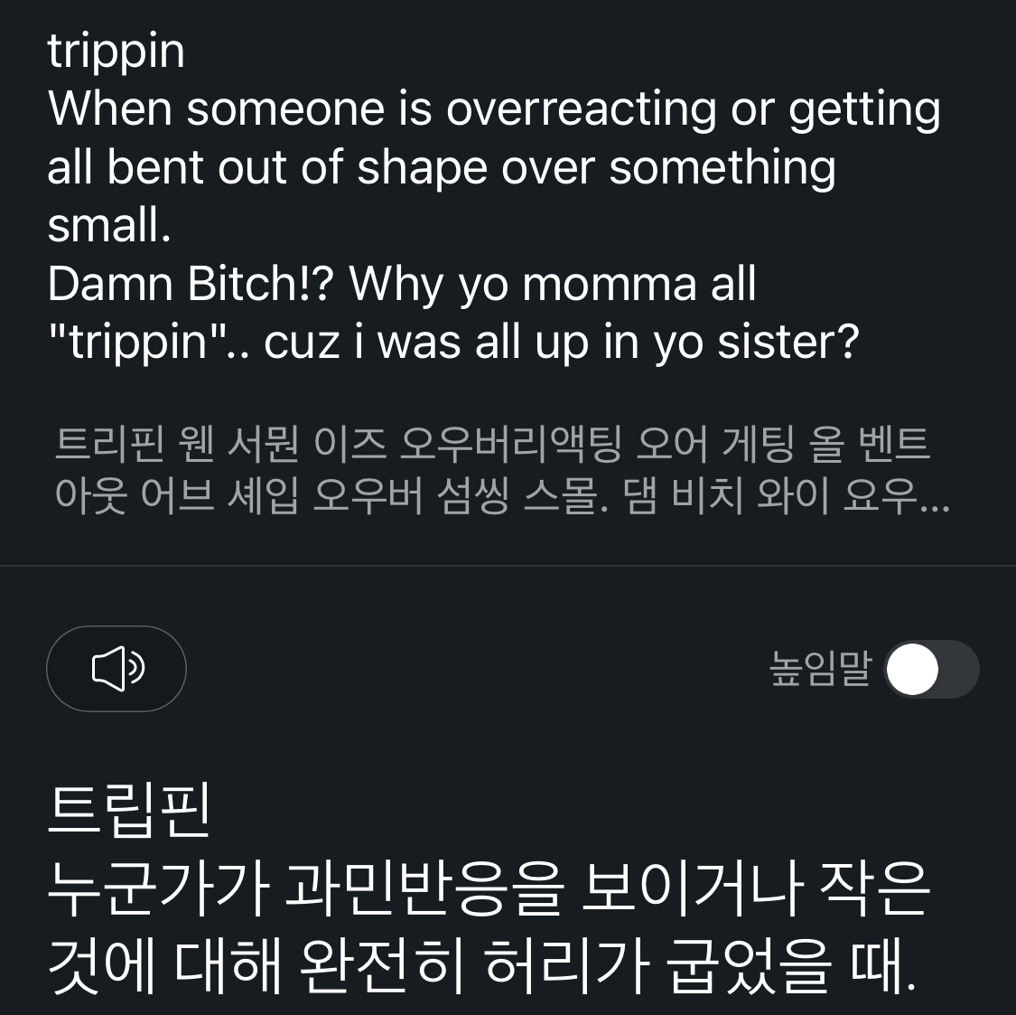 그리고 trippin' 이라는 뜻은 여행할 때 트립인가? 할 수 있을테지만 두 가지 해석으로 난 바라봤어