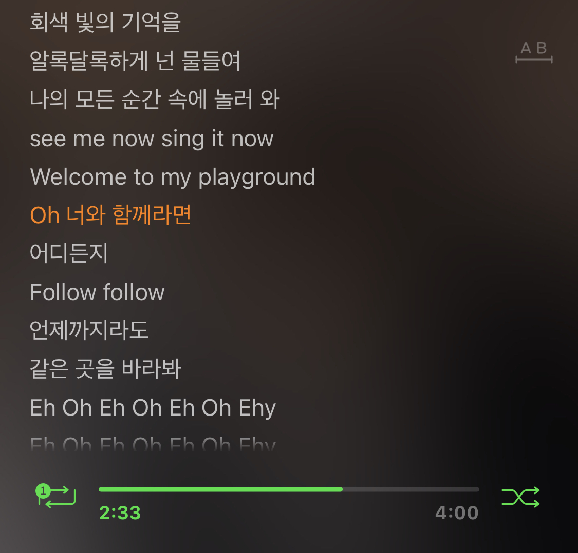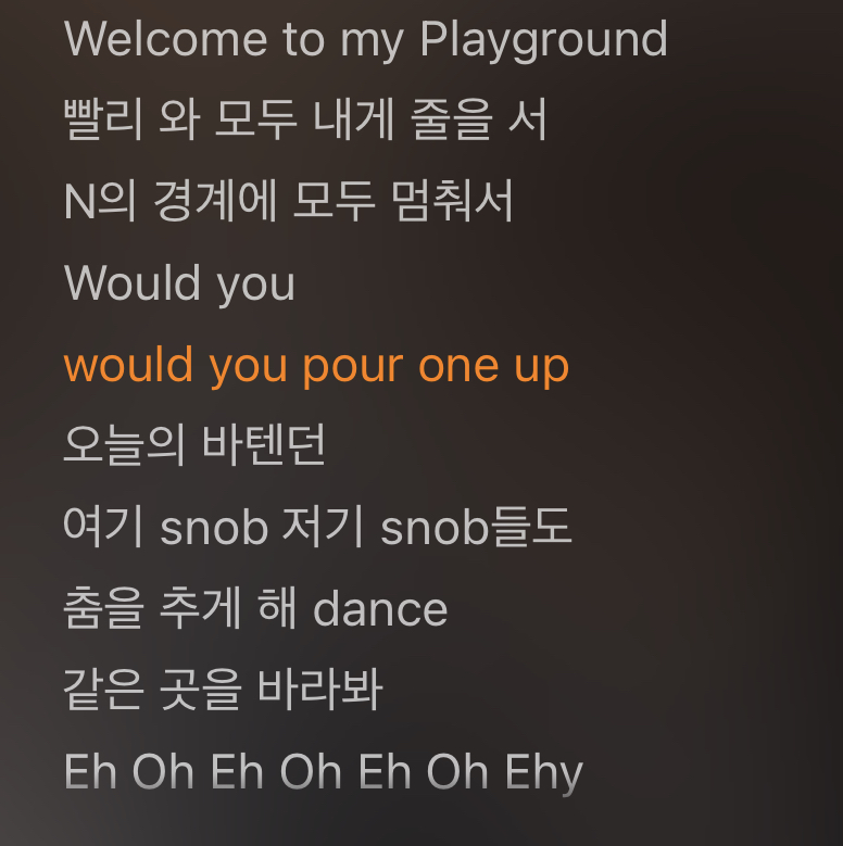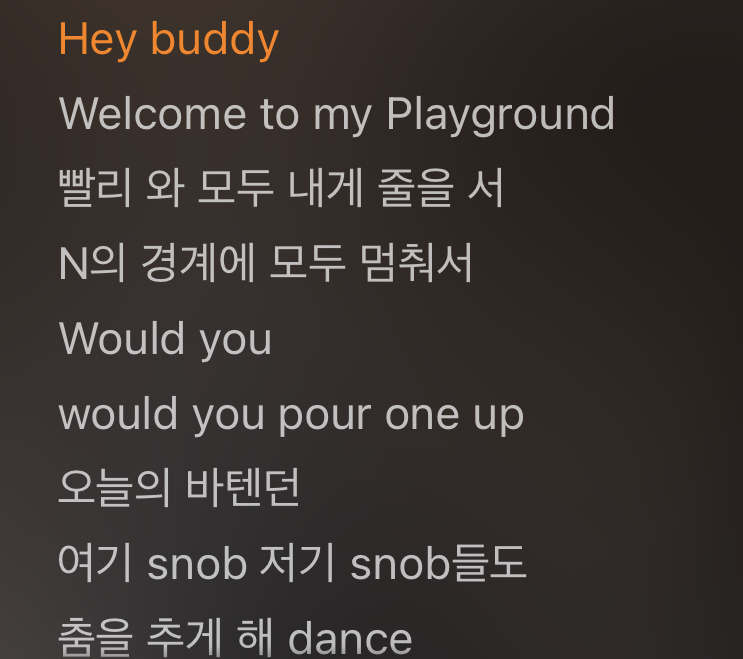 자 여기 Hey Buddy 와 빨리 와 모두 내게 줄을 서 , N의 경계 가사를 보자.