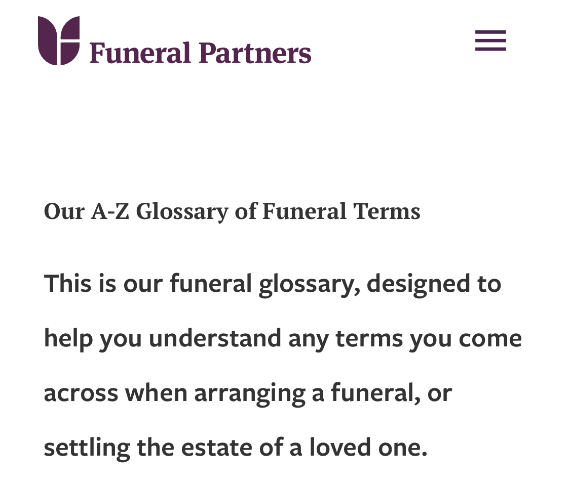 일단 내가 찾아본 곳은 영국 장례식에 대한 사이트였어 A to Z로 정리가 잘 되어 있더라고!