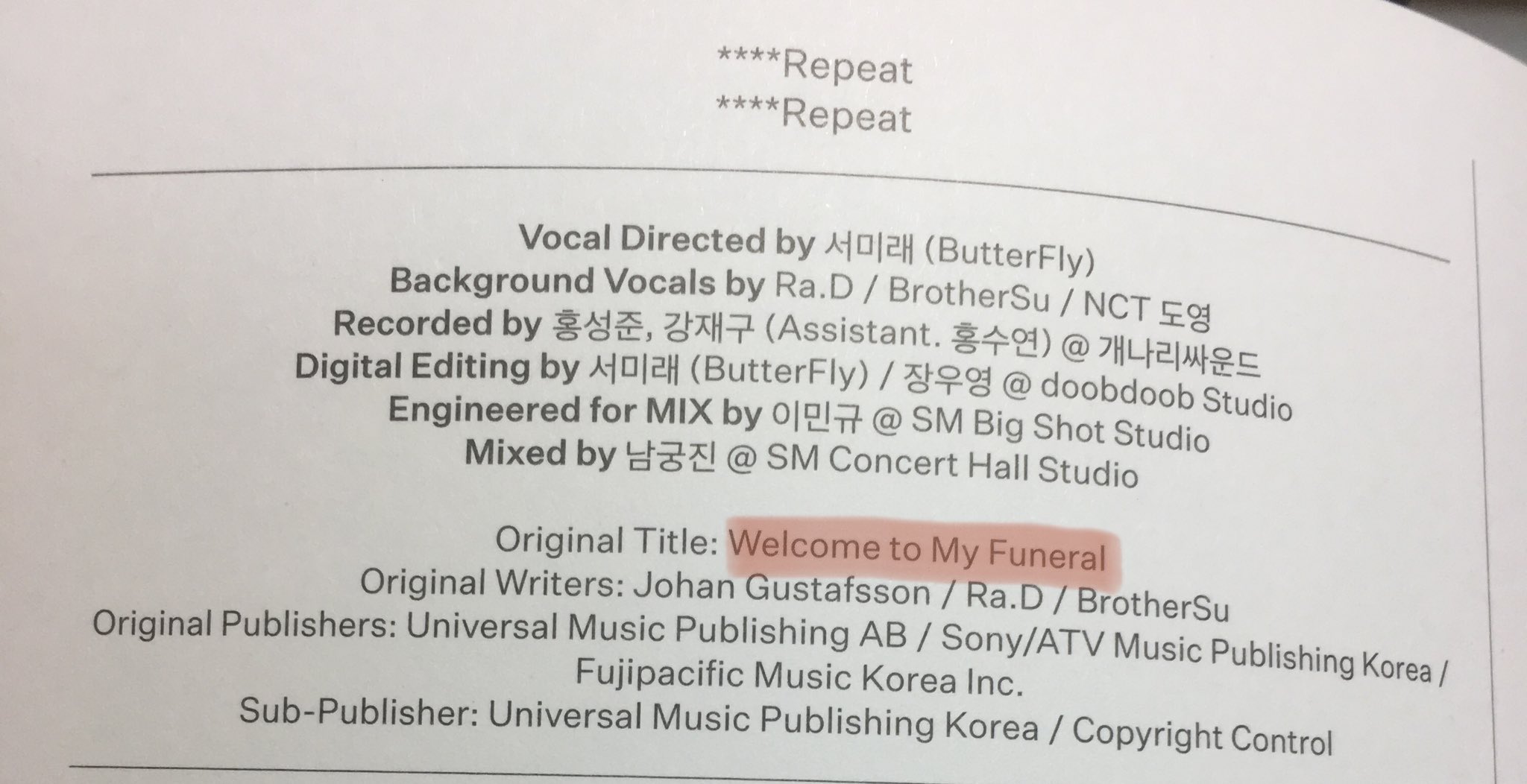 엥? 그렇지만 아무리 그래도 아이돌 노래에서 장례식 노래는 좀 마이너하지 않아? 가사랑 노래 분위기만 봐도 신나고 즐거운 노래인데? 그냥 데모곡처럼 노래만 따오고 가사 다 갈아엎은거 아녀?