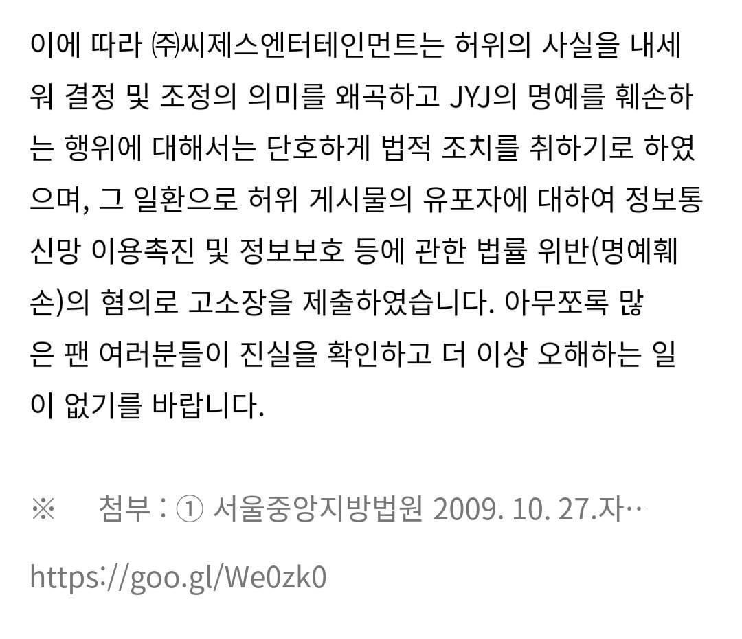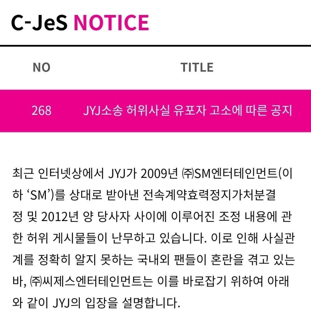 씨제스가 저 루머를 고소하면서 올린 공지와 합의서 내용