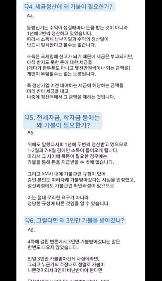 방송출연을 해도 그 출연료가 다 SM한테 간거야.