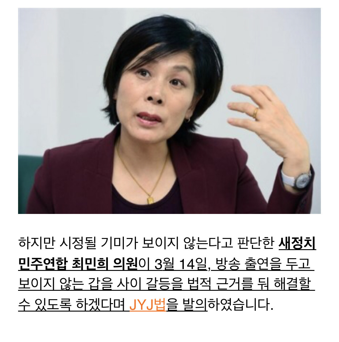 아, 물론 이 법안이 발의됐다고 해서 JYJ가 방송에 나오는건 아니야.