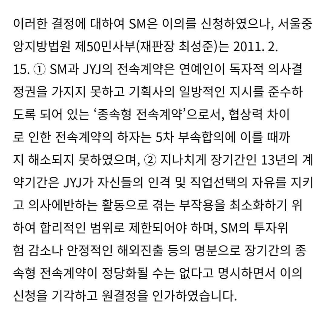 분명한건 SM과 JYJ의 계약에 관련된 저 사건에서