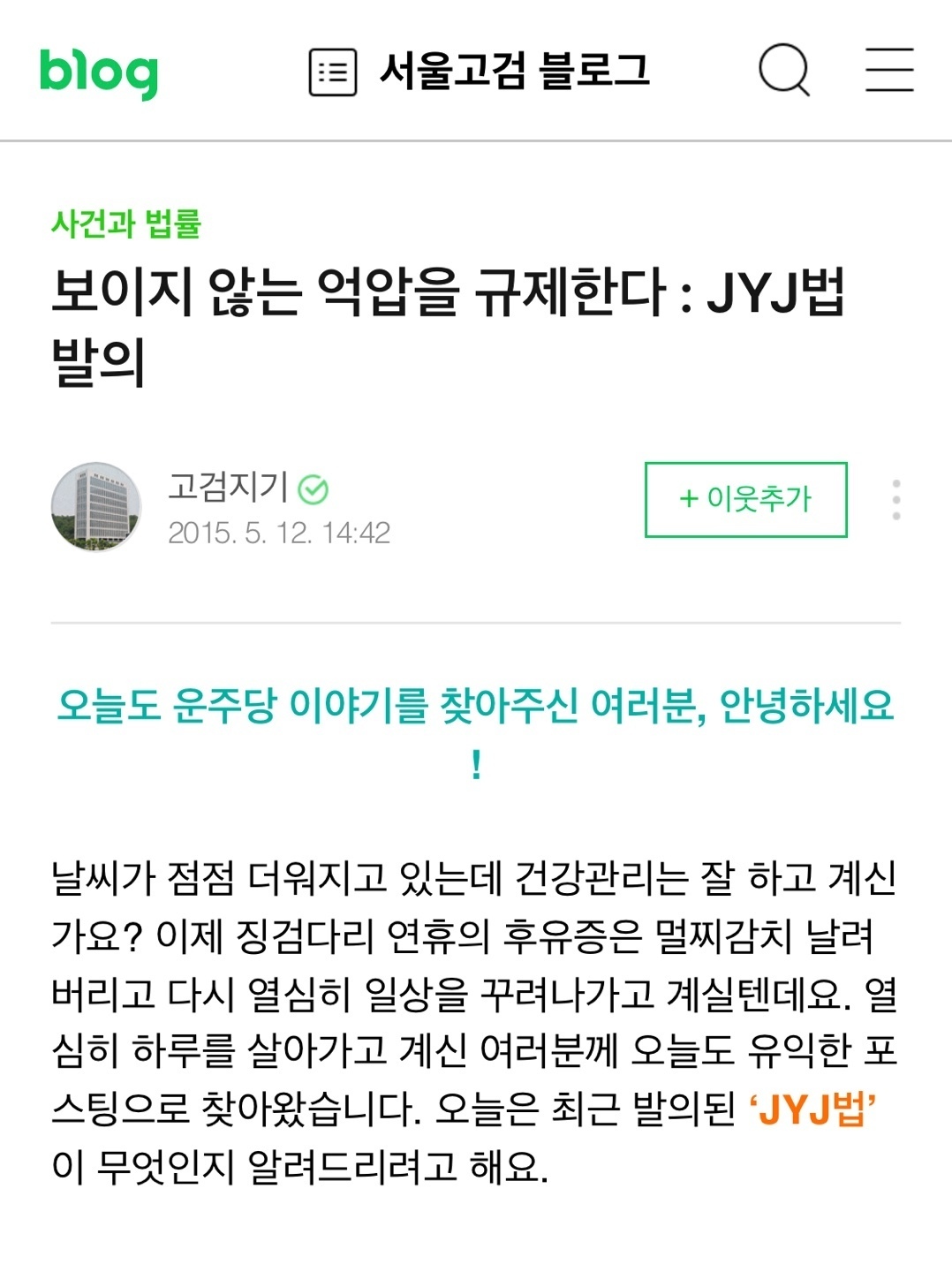 서울고검블로그가 할일이 존나 없어서 자기네 블로그에