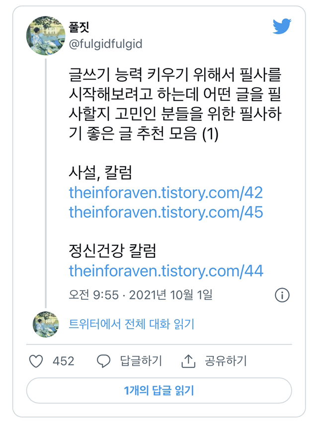 + 좋아하는 글이 길다면 2-3일에 나누어 하기