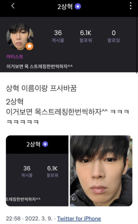 이렇게라도 해명을 안하면 팬인 제가 봐도 너무나 상처받고 무서운 그 말들 문장들..괜히 프메에 목디스크 얘기 꺼낸거부터 잘못한거같고 아무것도 안하면 상혁이에게 너무 미안하고 죄책감이 들어서 없는 글솜씨로 구구절절 얘기해봤는데요