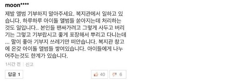 작성자보라빛아미 작성시간 22.04.18 차라리 앨범1장 값을 돈으로 모아 후원하는게 내 연예인한테도 도움될듯