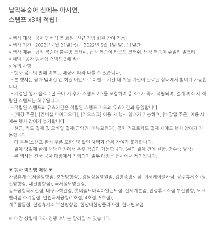 [음식]공차 납작복숭아 신메뉴 3종 출시 작성자봄인가 봐|작성시간22.04.21|조회수3,032 목록 댓글 18 글자크기 작게가 글자크기 크게가 스탬프 이벤트도 한다고 함!ㅊㅊ 공홈 다음검색 현재 게시글 추가 기능 열기 북마크 공유하기 신고 센터로 신고 댓글 댓글 18 댓글쓰기 답글쓰기 댓글 리스트 답댓글 작성자flitz | 작성시간 22.04.21 ㄴㄴ 매장에서 빼는 거 아니면 아직 있어 작성자윤킴 | 작성시간 22.04.21 헐 복숭아???? 이건 좀 달달하겠지 어디에서 먹으면 약맛나던데 ㅋ큐ㅠㅠㅠㅠ 작성자버터링야 | 작성시간 22.04.21 미쳤다.. 완전 맛있겠다 작성자복주 | 작성시간 22.04.21 내일 집가면서 사먹어야지.. 작성자온기 | 작성시간 22.04.21 미친 맛있겠다 댓글 전체보기