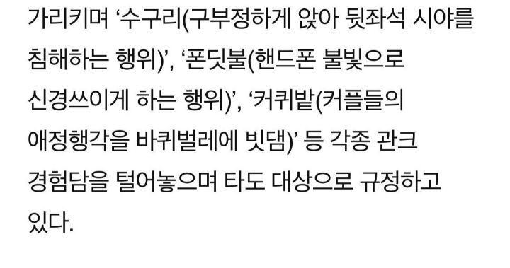 영화관에서도 하면 안되는걸 왜 자꾸 하는지 모르겠는데 그걸 고나리 하는 사람만 문제 삼음