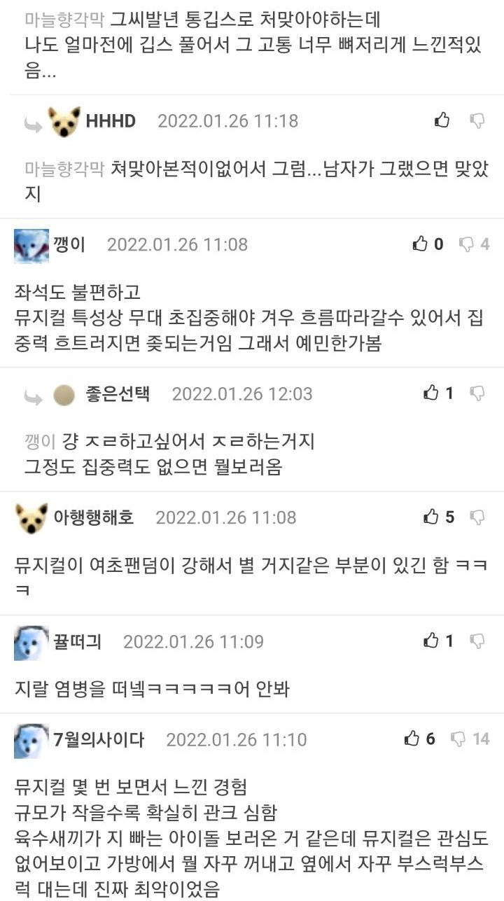 나도 뮤지컬 좋아하지만 연뮤덕까지는 아니고 처음에 저런 고나리질 너무 싫어서 공감갔는데 요즘 사람들 정도가 심해진 느낌...