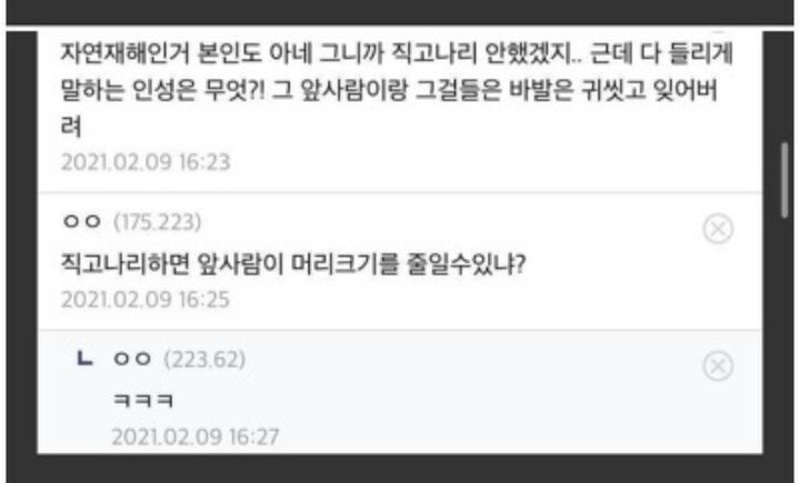 근데 15만원 주고 앞에 사람 키가 커서 시야가 다 가리면 앞열이 아닌이상 요청시 다른 자리로 바꾸는건 메뉴얼에도 있는건데 머리크기 줄여야하냐고 비꼬기