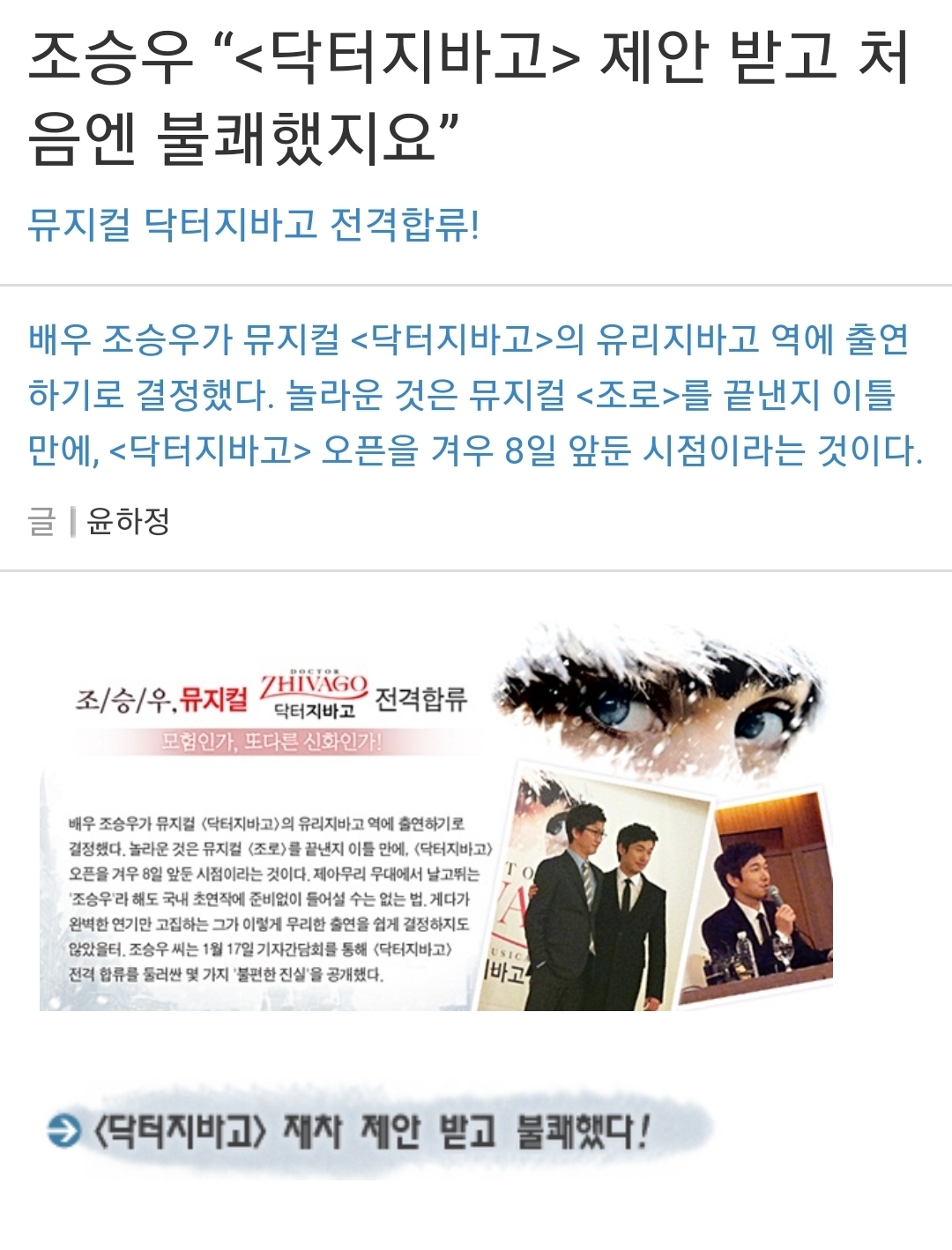 개막 8일 앞두고 조승우에게 제안