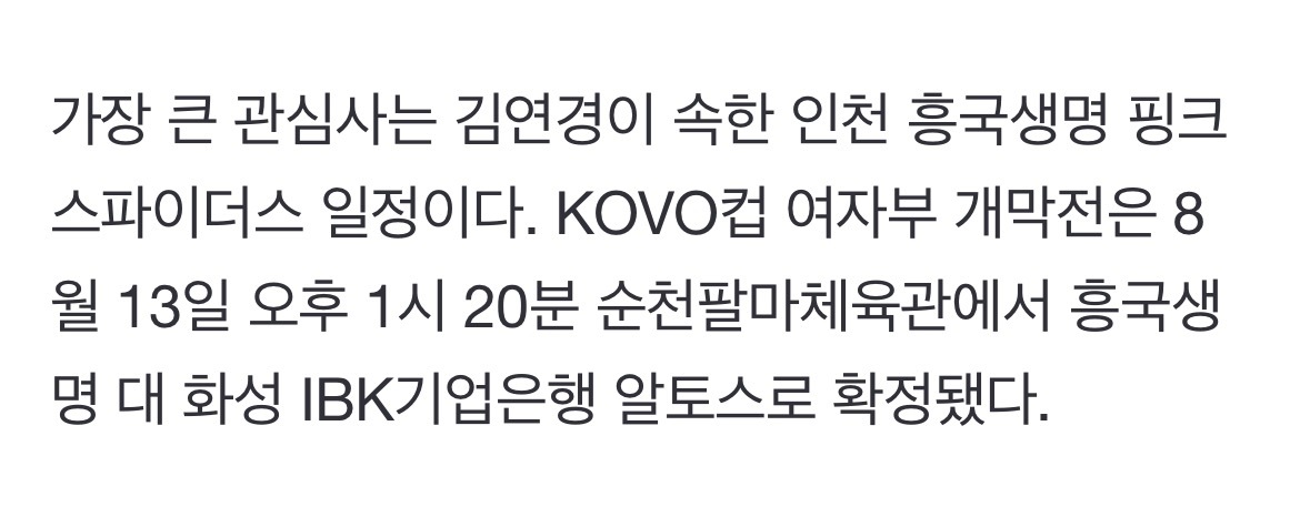 [스포츠][오피셜] 김연경, IBK기업은행과 맞대결에서 공식 복귀전… KOVO컵 일정 확정 작성자KIM HEE JIN|작성시간22.07.26|조회수548 목록 댓글 12 글자크기 작게가 글자크기 크게가 사진을 누르면 이슈늬우스 공지로 이동됩니다.https://naver.me/GI6LtOio[오피셜] 김연경, IBK기업은행과 맞대결에서 공식 복귀전… KOVO컵 일정 확정[스포탈코리아] 한재현 기자= 1년 만에 국내 무대로 돌아온 ‘배구여제’ 김연경의 공식 복귀전이 확정됐다.한국배구연맹(KOVO)은 26일 오는 8월 13일부터 28일까지 순천에서 열리는 2022 순천-도드n.news.naver.com코보컵 일정 다음검색 현재 게시글 추가 기능 열기 북마크 공유하기 신고 센터로 신고 댓글 댓글 12 댓글쓰기 답글쓰기 댓글 리스트 작성자무지개색떡 | 작성시간 22.07.26 코보컵..!!! 진짜 보러간다ㅠㅠ 작성자승민(00.09.22) | 작성시간 22.07.26 일본팀은 왜뛰는겨....? 답댓글 작성자빡땃쮜 | 작성시간 22.07.26 팀 7개로 홀수라서! 작성자940412 | 작성시간 22.07.26 시발 코보 일부러 광복절날 흥국이랑 일본 경기 잡았네 좆같은놈들 답댓글 작성자NCTDREAM 제노 | 작성시간 22.07.26 아 ㅅㅂ 그렇네 .. ㅋㅋㅋㅋ 와 진짜 개빡친다 코보 진짜 언제 정신 차리냐 아 댓글 전체보기